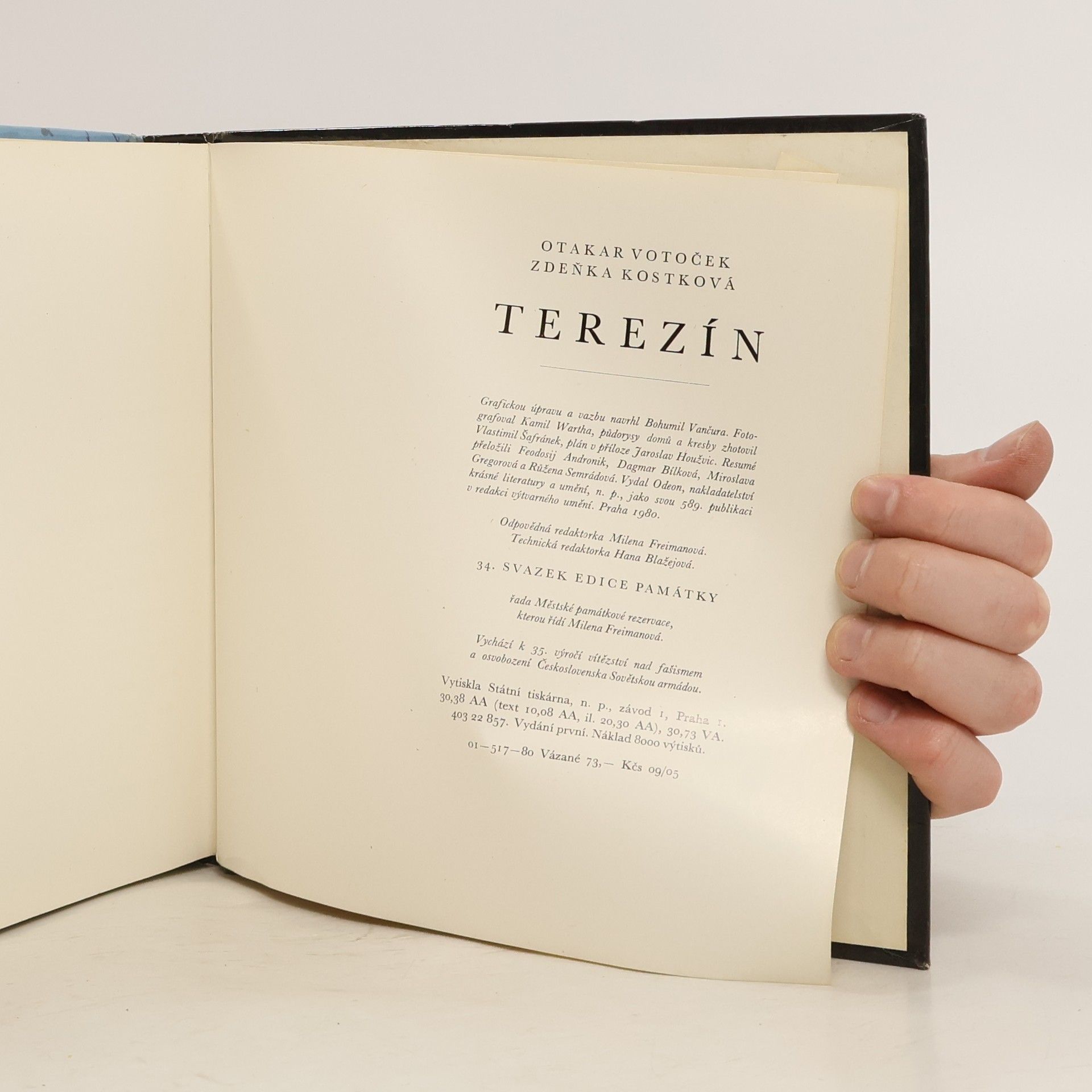 Obrazová publikace spolu s obsáhlou úvodní studií dokumentuje stavební vývoj Terezína od založení pevnosti v r. 1780 až do současnosti. Sleduje proměny Terezína po zrušení pevnosti, jeho osudy za okupace a vývoj v poválečném období. 01-517-80