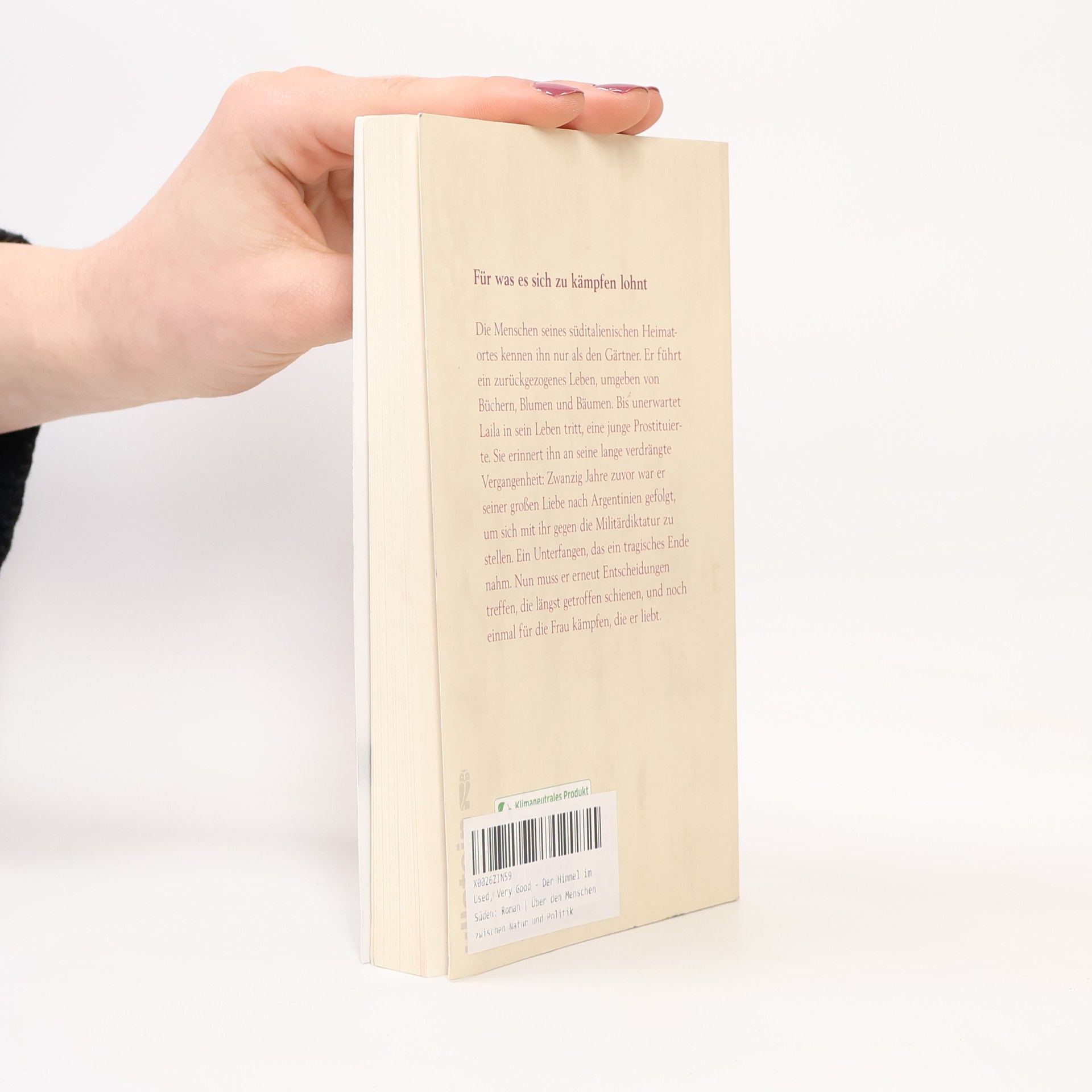 Für was es sich zu kämpfen lohnt Die Menschen seines süditalienischen Heimatortes kennen ihn nur als "den Gärtner". Er führt ein zurückgezogenes Leben, umgeben von Büchern, Blumen und Bäumen. Sein einziger Freund ist der Blumenverkäufer Selim, ein illegaler Einwanderer, der sich wie er nach dem Himmel im Süden sehnt. Bis unerwartet Laila in sein Leben tritt, eine junge Prostituierte. Sie erinnert ihn an seine lange verdrängte Vergangenheit: Zwanzig Jahre zuvor war er seiner großen Liebe nach Argentinien gefolgt, um mit ihr gegen die Militärdiktatur zu kämpfen. Ein Kampf, der ein tragisches Ende nahm. Nun wird er erneut vor Entscheidungen gestellt, die längst getroffen schienen, und gezwungen, für die Frau zu kämpfen, die er liebt.