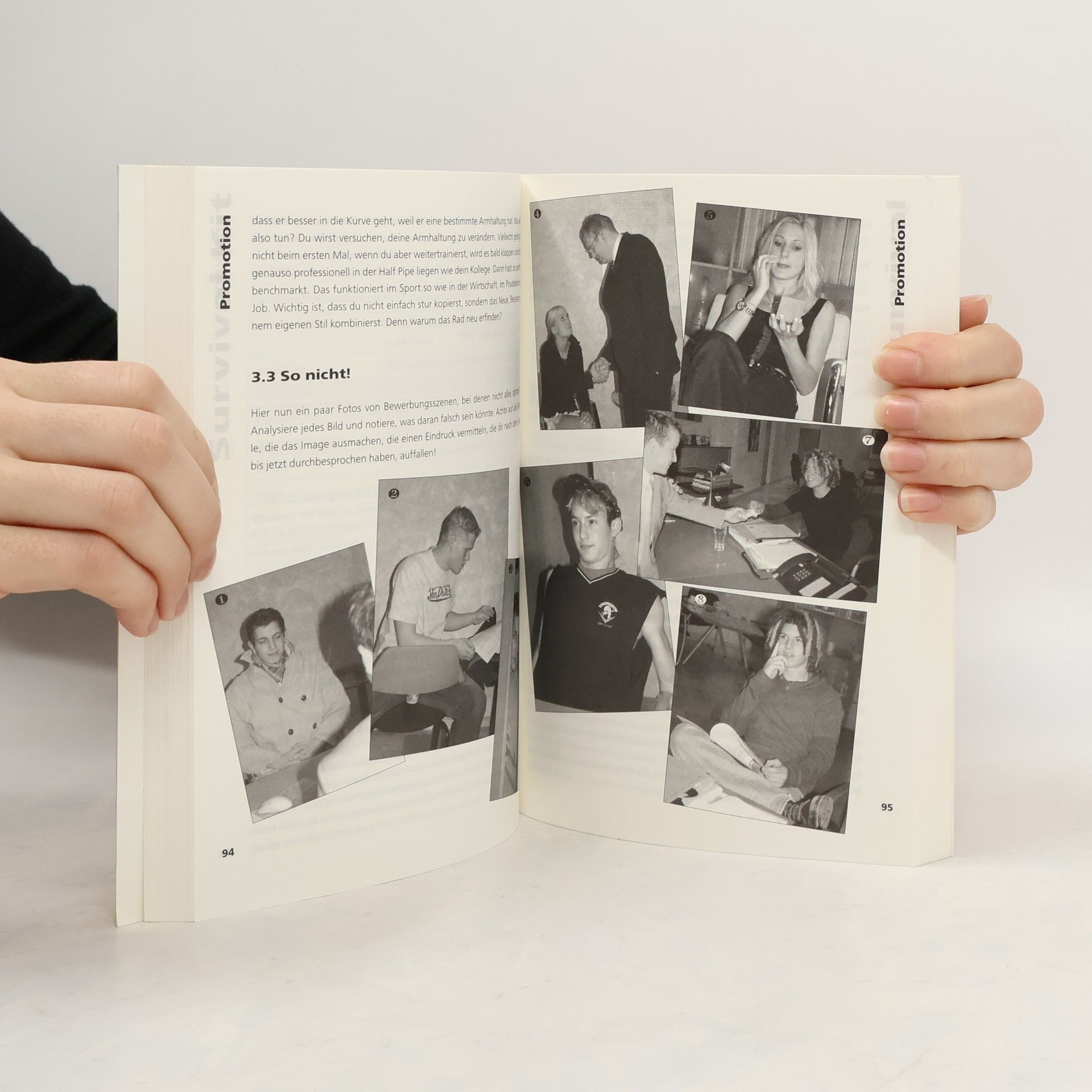 Das Thema Jugendarbeitslosigkeit steht im Brennpunkt der Politik. 37.000 15- bis 25-Jährige sind arbeitslos. 17.000 Jugendliche finden keine Lehrstellen oder kippen kurzfristig wieder aus dem Ausbildungssystem. Andererseits klagen mehr als die Hälfte aller Unternehmen über Schwierigkeiten, geeignete Lehrlinge zu finden. Umgangsformen, Selbstpräsentation und äußeres Erscheinungsbild sind wichtige Entscheidungskriterien. Das „Survival Kit“ proffesionalisiert Jugendliche: Verhalten, Image und Outfit sind ausschlaggebend für den beruflichen Einstieg. Geschrieben in der Sprache Jugendlicher, aufgebaut nach dem 4-P- Prinzip der Werbung und einem klassischen Coaching-Prozess folgend, werden junge Menschen mit allem ausgerüstet, was sie für ihre berufliche Zukunft brauchen.