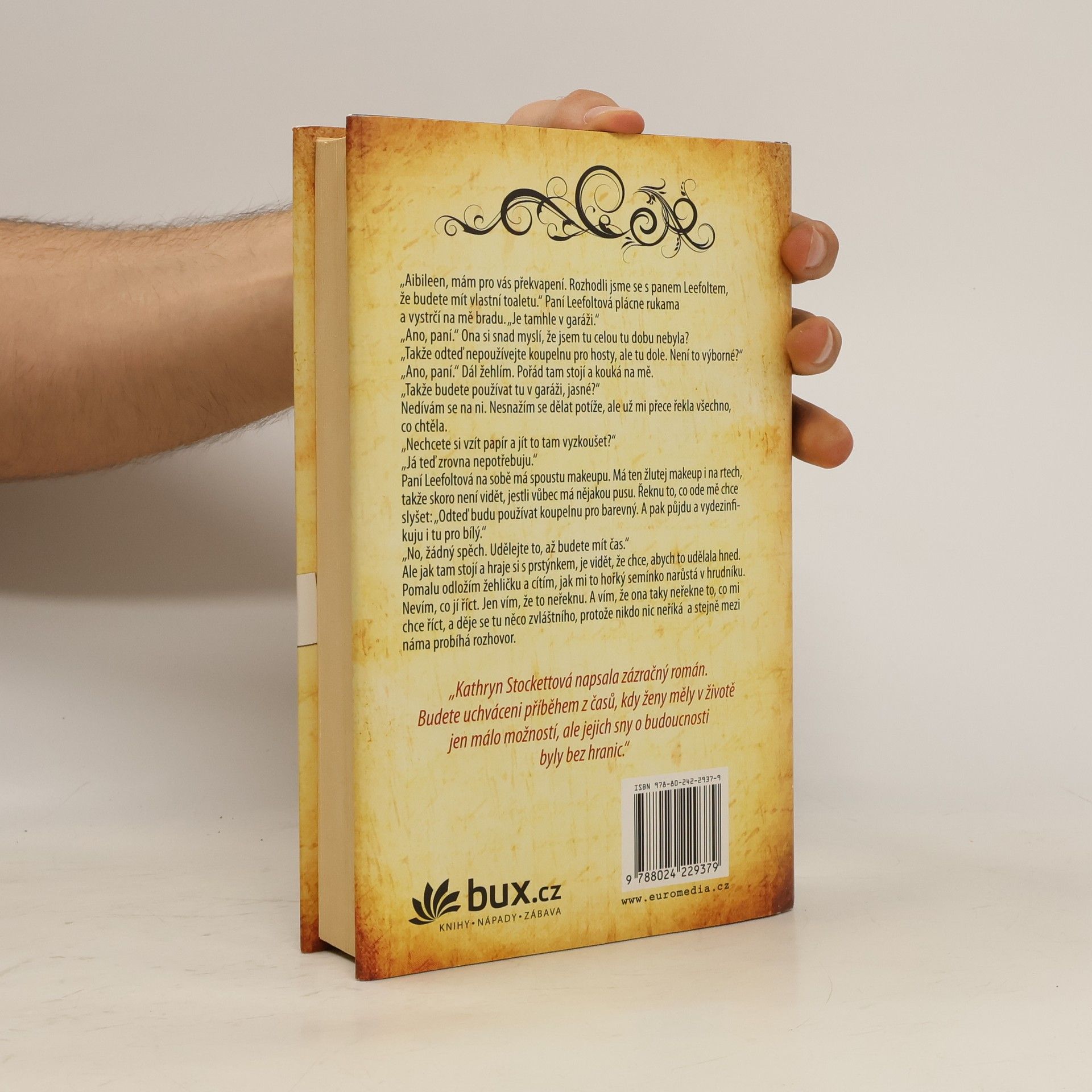 Společenský román a jedna z nejúspěšnějších amerických knih posledních let. Hluboký a dojemný příběh, zasazený do 60. let 20. století na americký Jih, je vyprávěn očima tří výjimečných žen. V době panující rasové segregace se mladá běloška, slečna Skeeter, s pomocí moudré Aibileen a rázovité Minny rozhodne ukázat svět očima černých hospodyň, čímž převrátí vzhůru nohama město i způsob, jakým se na sebe dívají ženy – matky, dcery, pečovatelky, přítelkyně. Za otázkami rasismu i postavením ženy ve společnosti tkví hlubší poselství o hranicích, těch skutečných i těch, které existují v našich myslích.