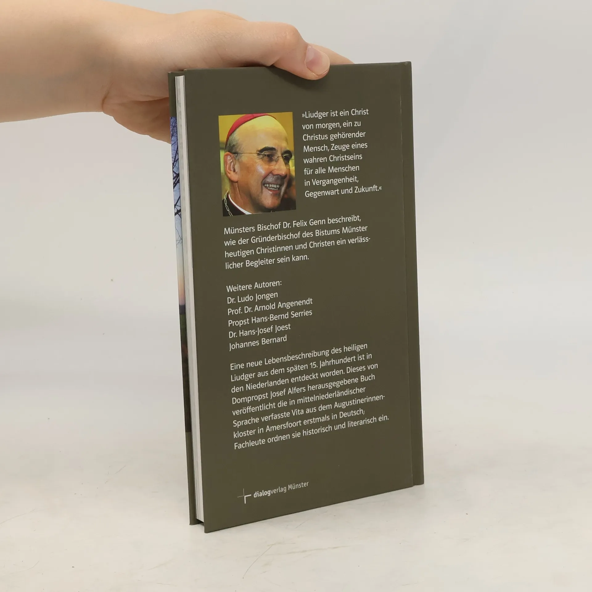 Eine neue Lebensbeschreibung des heiligen Liudger aus dem späten 15. Jahrhundert ist in den Niederlanden entdeckt worden. Dieses von Dompropst Josef Alfers herausgegebene Buch veröffentlicht die in mittelniederländischer Sprache verfasste Vita aus dem Augustinerinnenkloster in Amersfoort erstmals in Deutsch; Fachleute ordnen sie historisch und literarisch ein. Münsters Bischof Dr. Felix Genn beschreibt, wie der Gründerbischof des Bistums Münster heutigen Christinnen und Christen ein verlässlicher Begleiter sein kann.