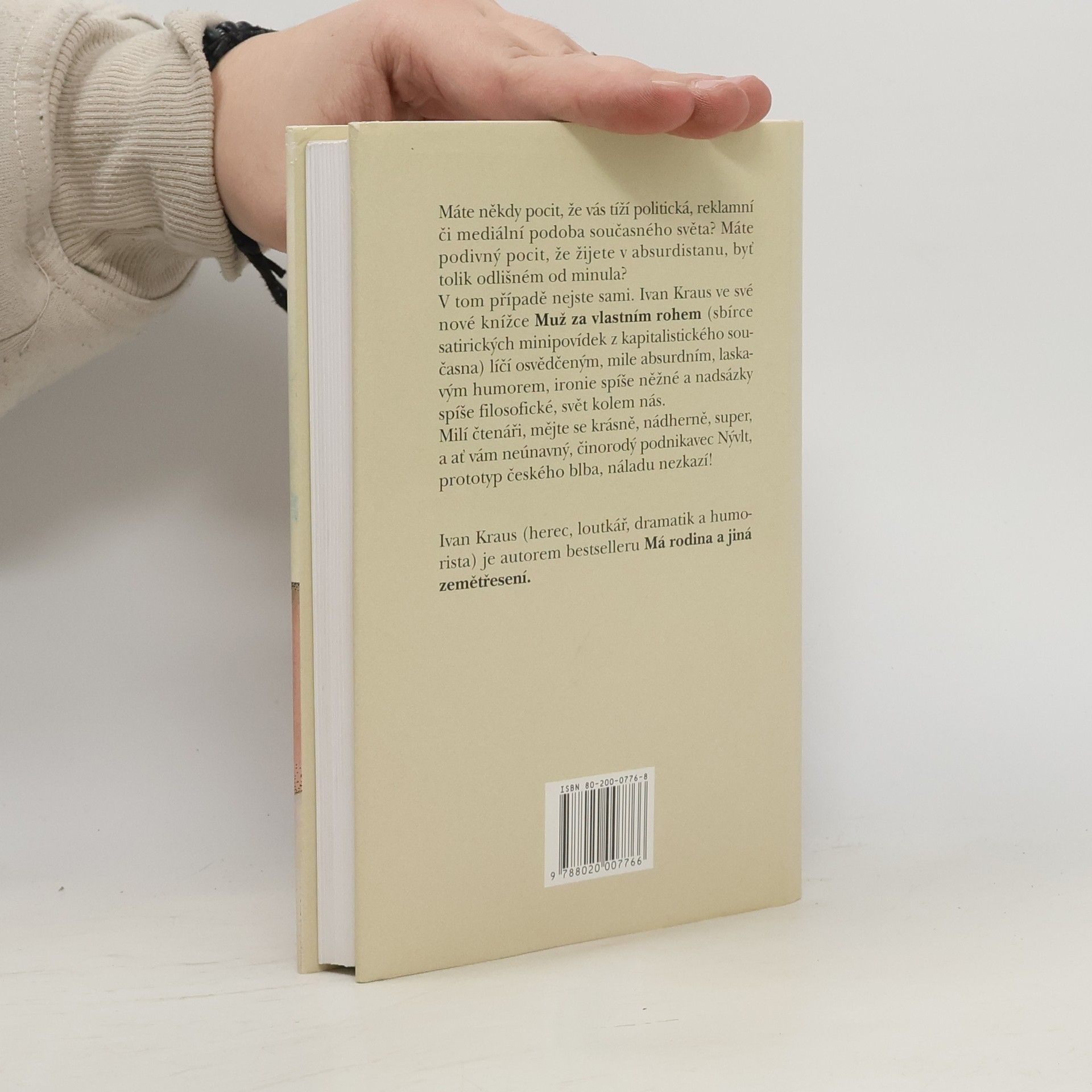 Máte někdy pocit, že vás tíží politická, reklamní či mediální podoba současného světa? Máte podivný pocit, že žijete v Absurdistánu, byť tolik odlišném od minula? V tom případě nejste sami. Sbírka satirických minipovídek z kapitalistického současna Muž za vlastním rohem líčíosvědčeným, mile laskavým humorem svět kolem nás. Milí čtenáři, mějte se krásně, nádherně, super, a ať vám neúnavný, činorodý podnikavec Nývlt, prototyp českého člověka, nezkazí náladu! Dotisky v roce 2000, 2002, 2003 a 2010.