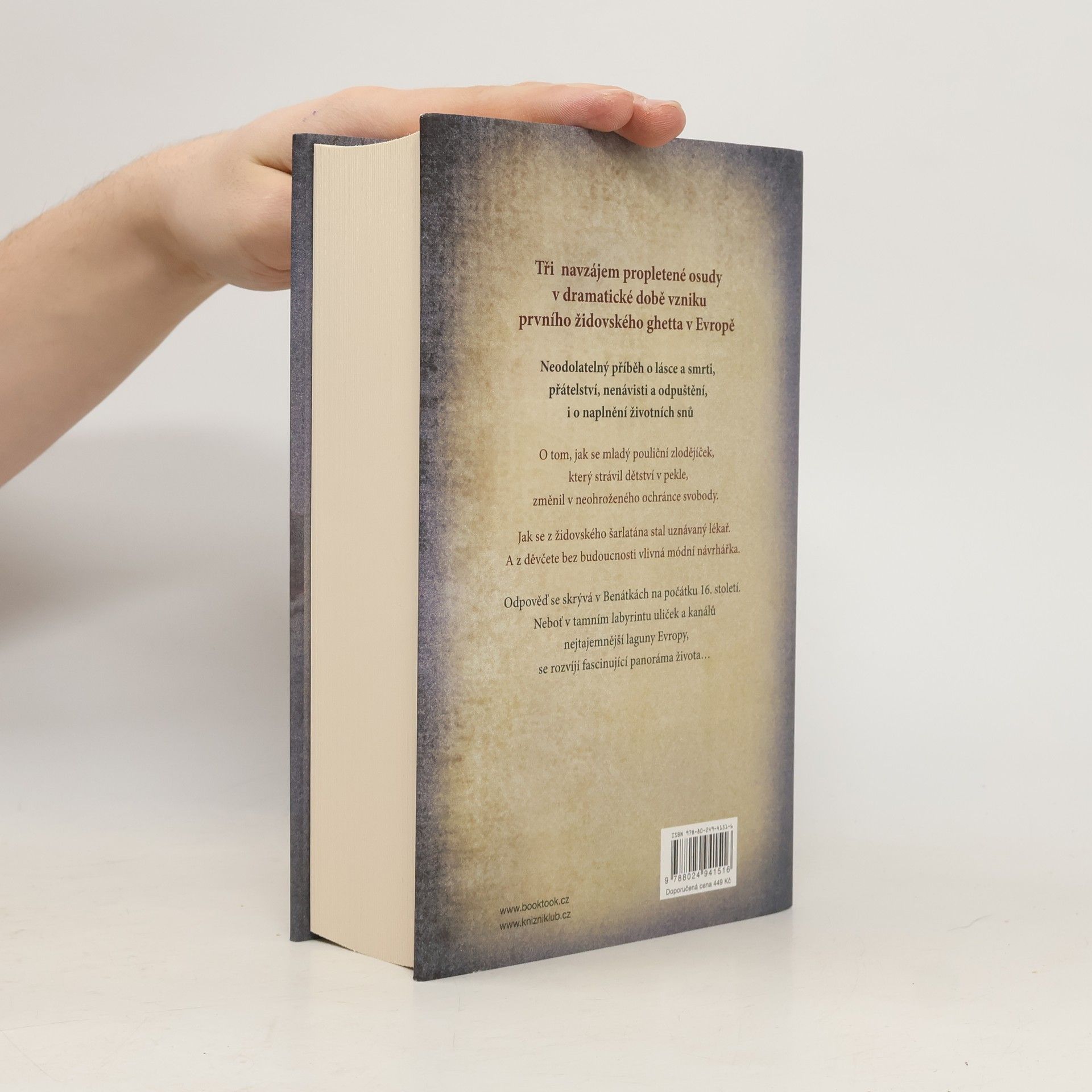 Tři navzájem propletené osudy v dramatické době vzniku prvního židovského ghetta v Evropě Neodolatelný příběh o lásce a smrti, přátelství, nenávisti a odpuštění, i o naplnění životních snů. O tom, jak se mladý pouliční zlodějíček, který strávil dětství v pekle, změnil v neohroženého ochránce svobody. Jak se z židovského šarlatána stal uznávaný lékař. A z děvčete bez budoucnosti vlivná módní návrhářka. Odpověď se skrývá v Benátkách na počátku 16. století. Neboť v tamním labyrintu uliček a kanálů nejtajemnější laguny Evropy, se rozvíjí fascinující panorama života…