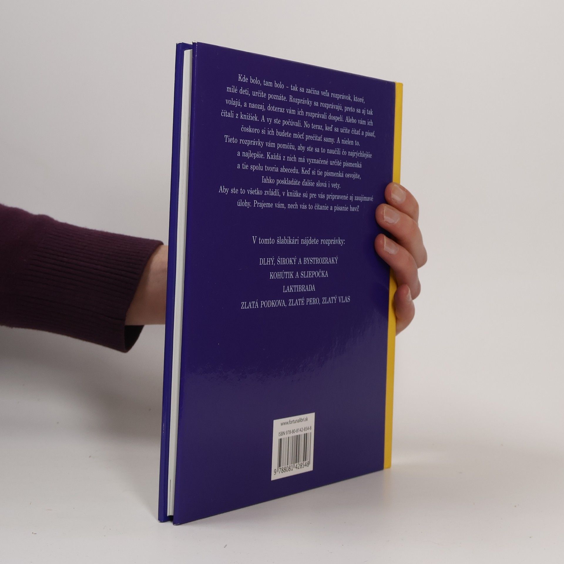 Kde bolo, tam bolo – tak sa začína veľa rozprávok, ktoré, milé deti, určite poznáte. Rozprávky sa rozprávajú, preto sa aj tak volajú, a naozaj, doteraz vám ich rozprávali dospelí. Alebo vám ich čítali z knižiek. A vy ste počúvali. No teraz, keď sa učíte čítať a písať, čoskoro si ich budete môcť prečítať samy. A nielen to. Tieto rozprávky vám pomôžu, aby ste sa to naučili čo najrýchlejšie a najlepšie. Každá z nich má vyznačené určité písmenká a tie spolu tvoria abecedu. Keď si tie písmenká osvojíte, ľahko poskladáte ďalšie slová i vety. Aby ste to všetko zvládli, v knižke sú pre vás pripravené aj zaujímavé úlohy. Prajeme vám, nech vás to čítanie a písanie baví! V tomto šlabikári nájdete rozprávky: Dlhý, Široký a Bystrozraký, Kohútik a sliepočka, Laktibrada, Zlatá podkova, zlaté pero, zlatý vlas