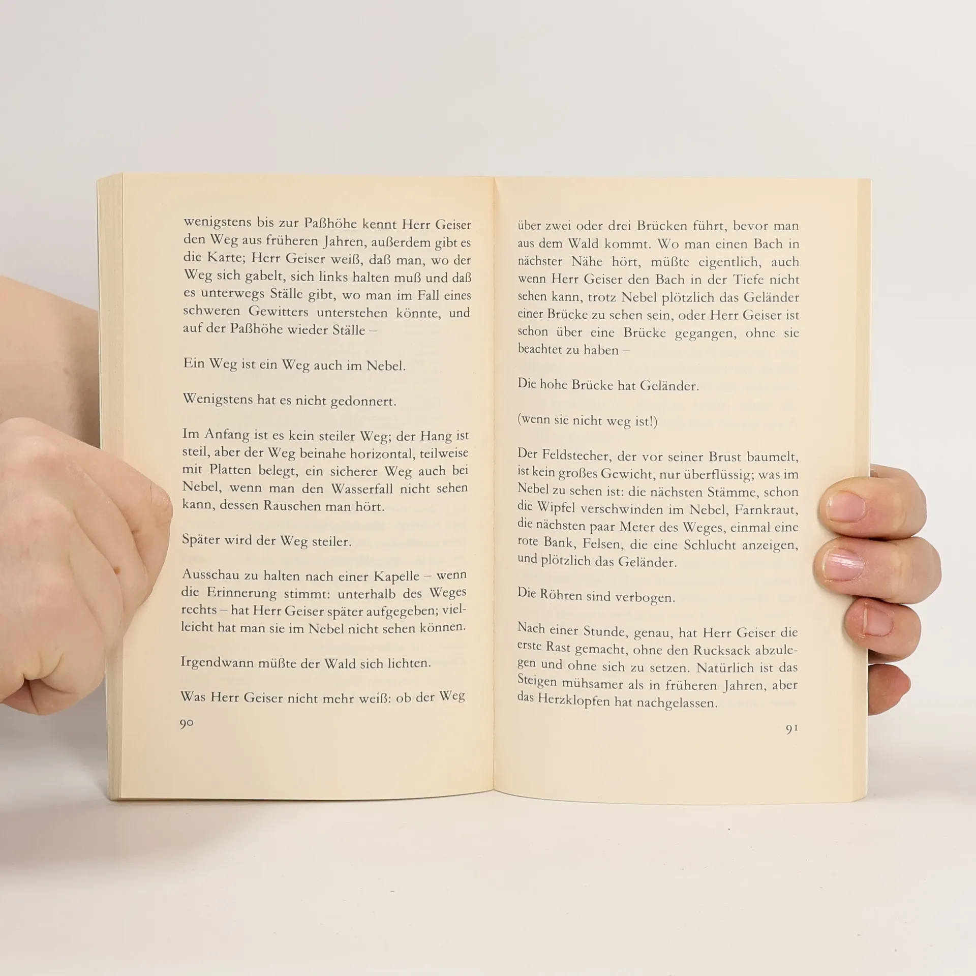 Mit der phantastischen Wachheit des Einsamen registriert Herr Geiser die kleinen Anzeichen einer denkbaren Katastrophe. Das Tal ist durch Unwetter von der Umwelt abgeschnitten. Gefaßt darauf, daß eines Tages der ganze Berg ins Rutschen kommt und das Dorf verschüttet für alle Zeit, liest Herr Geiser im Lexikon, in der Bibel, in Geschichtsbüchern und schreib ab, was nicht vergessen werden soll.