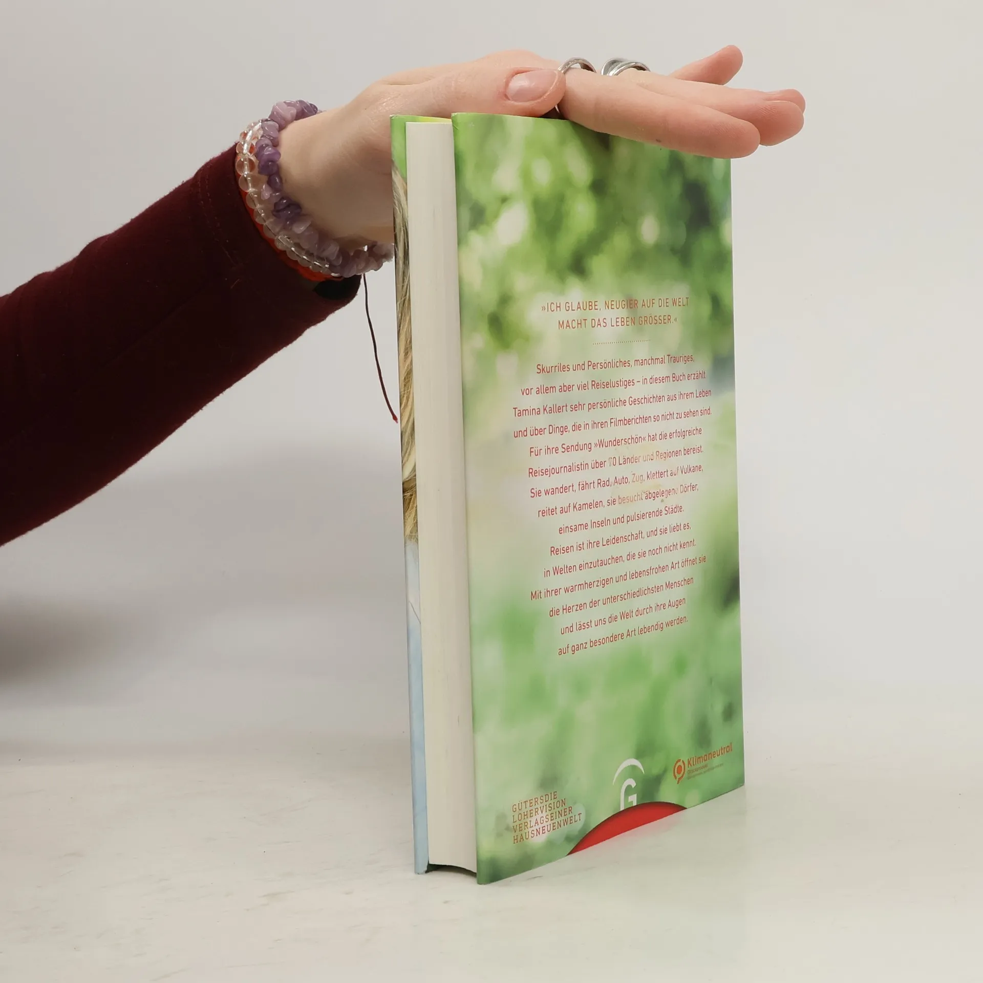 »Ich glaube, die Neugier auf die Welt macht das Leben größer.« (Tamina Kallert) Skurriles und Persönliches, manchmal Trauriges, vor allem aber viel Reiselustiges – in diesem Buch erzählt Tamina Kallert von den Dingen, die in ihren Filmberichten so nicht zu sehen sind. Für ihre Sendung »Wunderschön« hat die erfolgreiche Reisejournalistin über 70 Länder und Regionen bereist. Sie wandert, fährt Rad, Auto, Zug, klettert auf Vulkane, reitet auf Kamelen, sie besucht abgelegene Dörfer, einsame Inseln und pulsierende Städte. Reisen ist ihre Leidenschaft, und sie liebt es, in Welten einzutauchen, die sie noch nicht kennt. Mit ihrer warmherzigen und lebensfrohen Art öffnet sie die Herzen der unterschiedlichsten Menschen. Berührende Erlebnisse hinter den Reisegeschichten Unterwegs mit der »Herzensöffnerin« Tamina Kallert Herzlich, empathisch und authentisch Reisen bereichert – und das Lesen dieses Buches erst recht