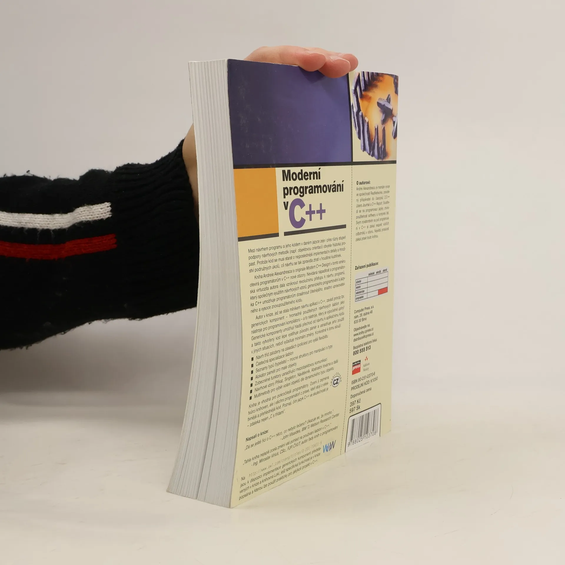 Nevídaná nápaditost a programátorská virtuozita autora dala vzniknout revolučnímu přístupu k návrhu programů, který společným využitím návrhových vzorů, generického programování a jazyka C++ umožňuje programátorům dosáhnout čitelnějšího, snadno upravovatelného a vysoce znovupoužitelného kódu. Kniha je vhodná pro pokročilejší programátory.