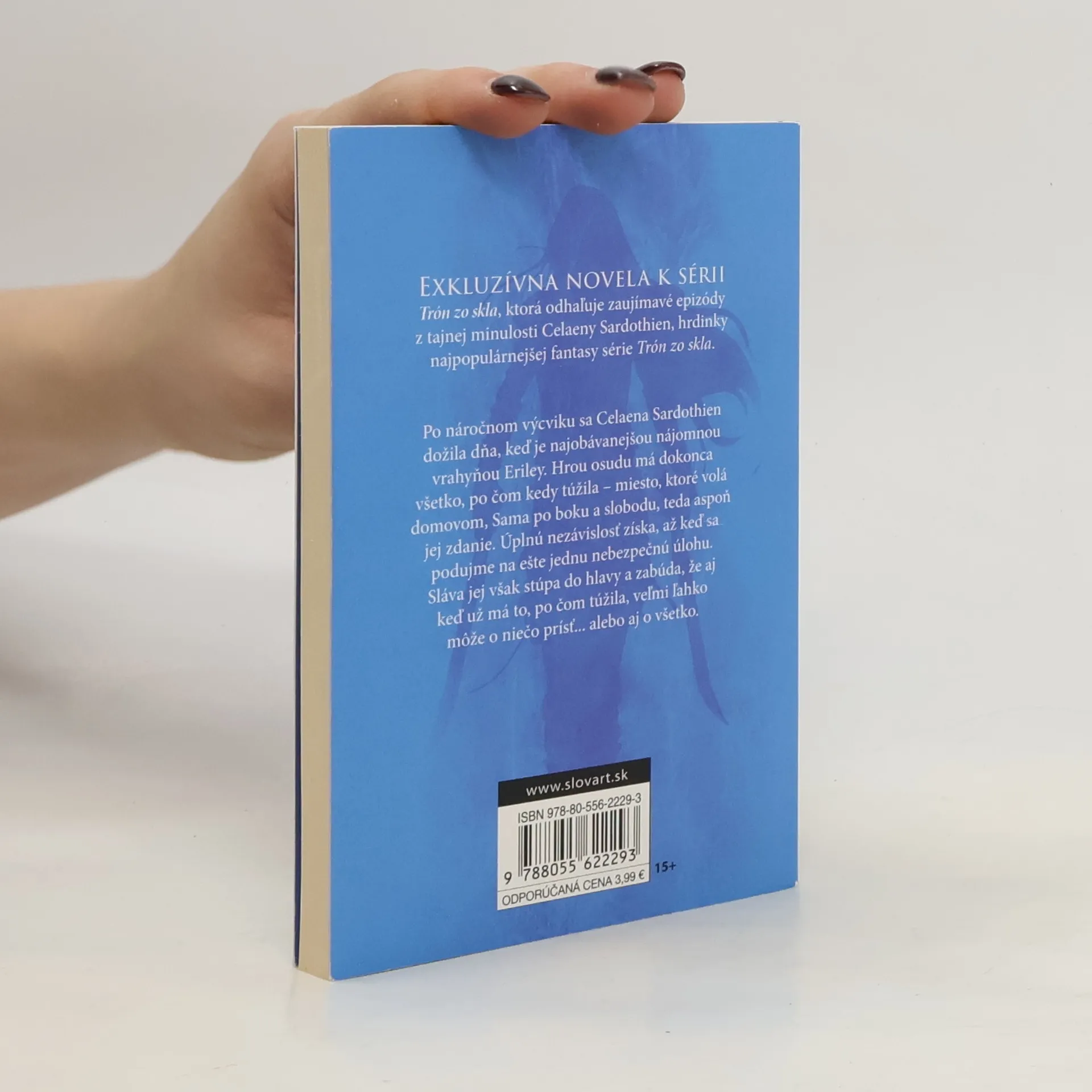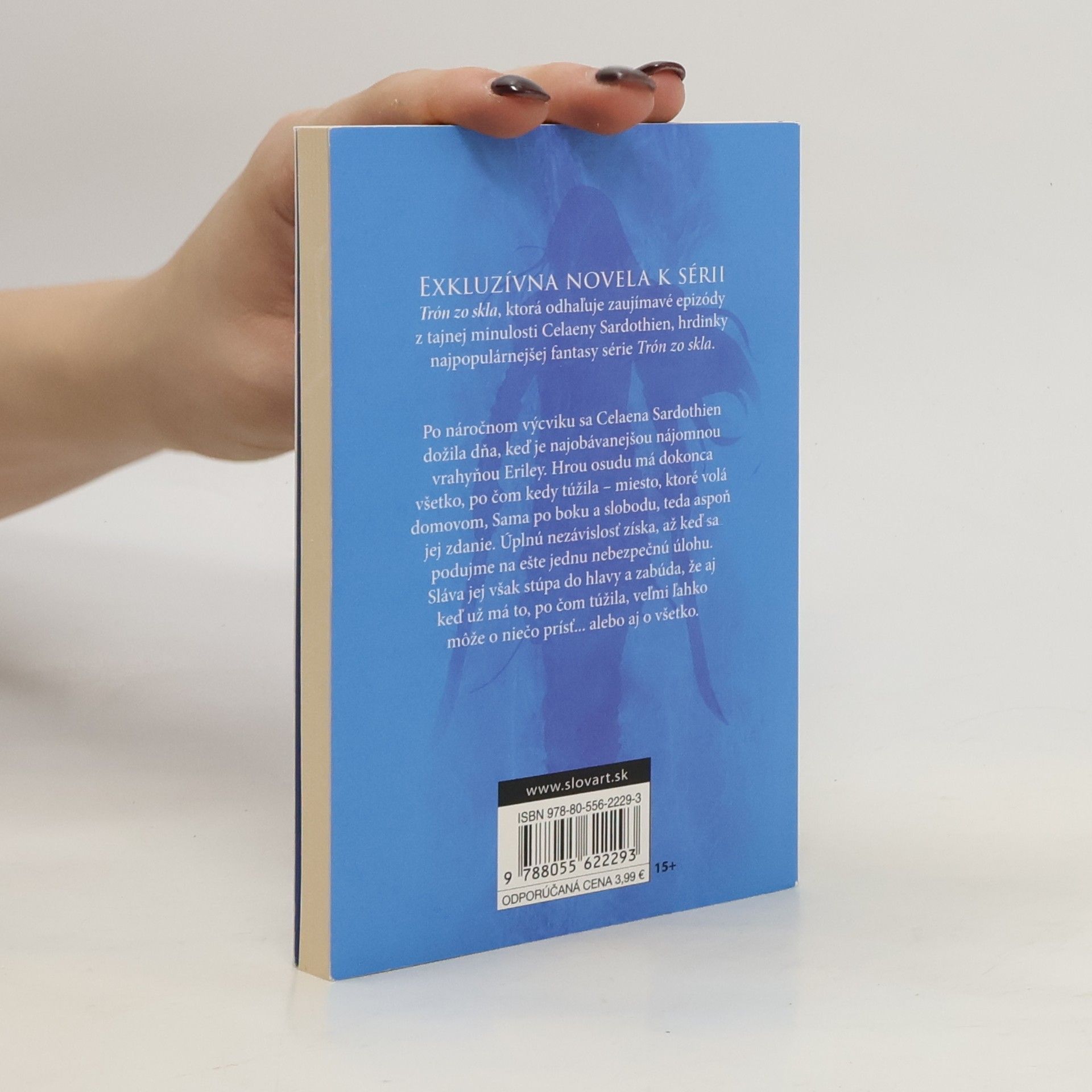 Exkluzívna novela k sérii Trón zo skla, ktorá odhaľuje zaujímavé epizódy z tajnej minulosti Celaeny Sardothien, hrdinky šesťdielnej série Trón zo skla. Po náročnom výcviku sa Celaena Sardothien dožila dňa, kedy je skutočne najobávanejšou nájomnou vrahyňou Eriley. Hrou osudu má dokonca všetko, po čom kedy túžila – miesto, ktorá volá domovom, Sama po boku a slobodu, teda aspoň jej zdanie. Úplnú slobodu získa, až keď sa podujme na ešte jednu nebezpečnú úlohu. Sláva jej ale stúpa do hlavy a zabúda, že keď už má to po čom túžila, veľmi ľahko môže o niečo prísť… alebo rovno aj o všetko.