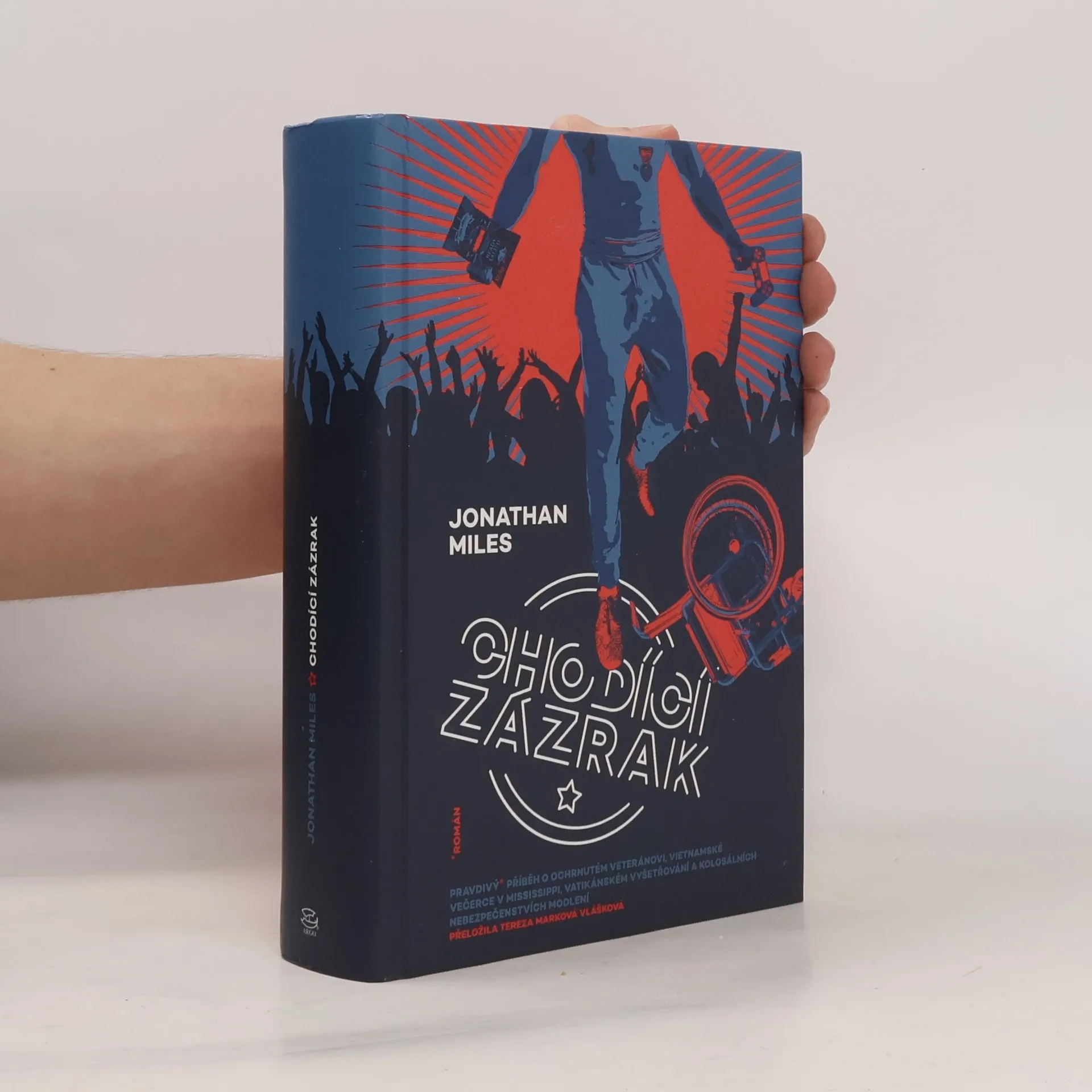 Cameron Harris narukoval hned po střední škole do armády a z války v Afghánistánu se vrátil na invalidním vozíku. O čtyři roky později žije se sestrou Tanyou v rodném městečku napůl zbořeném hurikánem Katrina a má dost monotónní život: kouká na telku, hraje videohry, občas se s Tanyou vypraví do místní večerky, aby nakoupili cigára, pivo a křupky… Jenomže jednoho horkého srpnového odpoledne, když čeká, až Tanya zaplatí a pojedou domů, jako by jím projela nějaká vlna a… Cameron vstane! Nastane cirkus: z večerky se stane poutní místo, kde se odehrál zázrak, lékaři na Cameronovi testují všechno, co je napadne, Vatikán vyšle zmocněnce, aby to celé prozkoumal, a nakonec si ho všimne i Hollywood. Ale co si s tím vším má počít on? Chodící zázrak je třeskutě vtipná studie toho, jak funguje současná americká společnost, jak vznikají mýty a jak je snadné, aby se v tom člověk ztratil. „ „Miles je tak virtuózní spisovatel, že čtenáři sami pocítí, jak se během četby stávají lepšími, všímavějšími lidmi.“ Los Angeles Review of Book