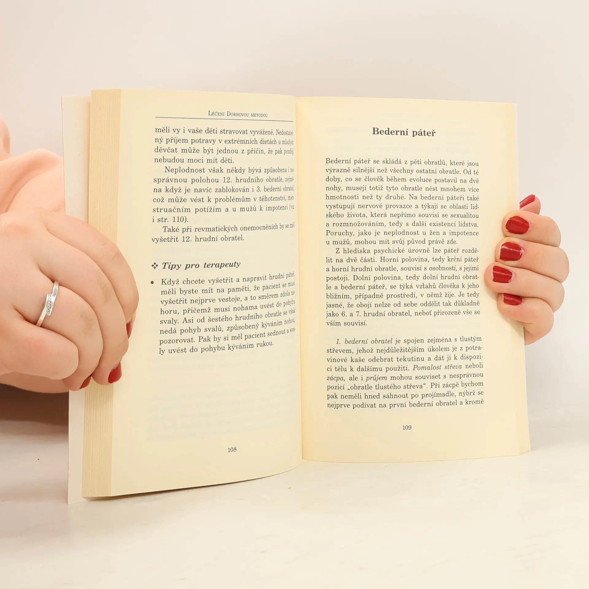 V této knize je podrobně vysvětlena teorie a především praxe jemné a šetrné terapie - Dornovy metody. Krok za krokem nám autoři ukazují, jak lze šetrně ošetřit páteř i jednotlivé obratle, co může pacient udělat sám pro sebe jak v léčbě, tak i v prevenci a jak tento postup ovlivňuje další části těla, tělesné orgány i psychiku člověka.