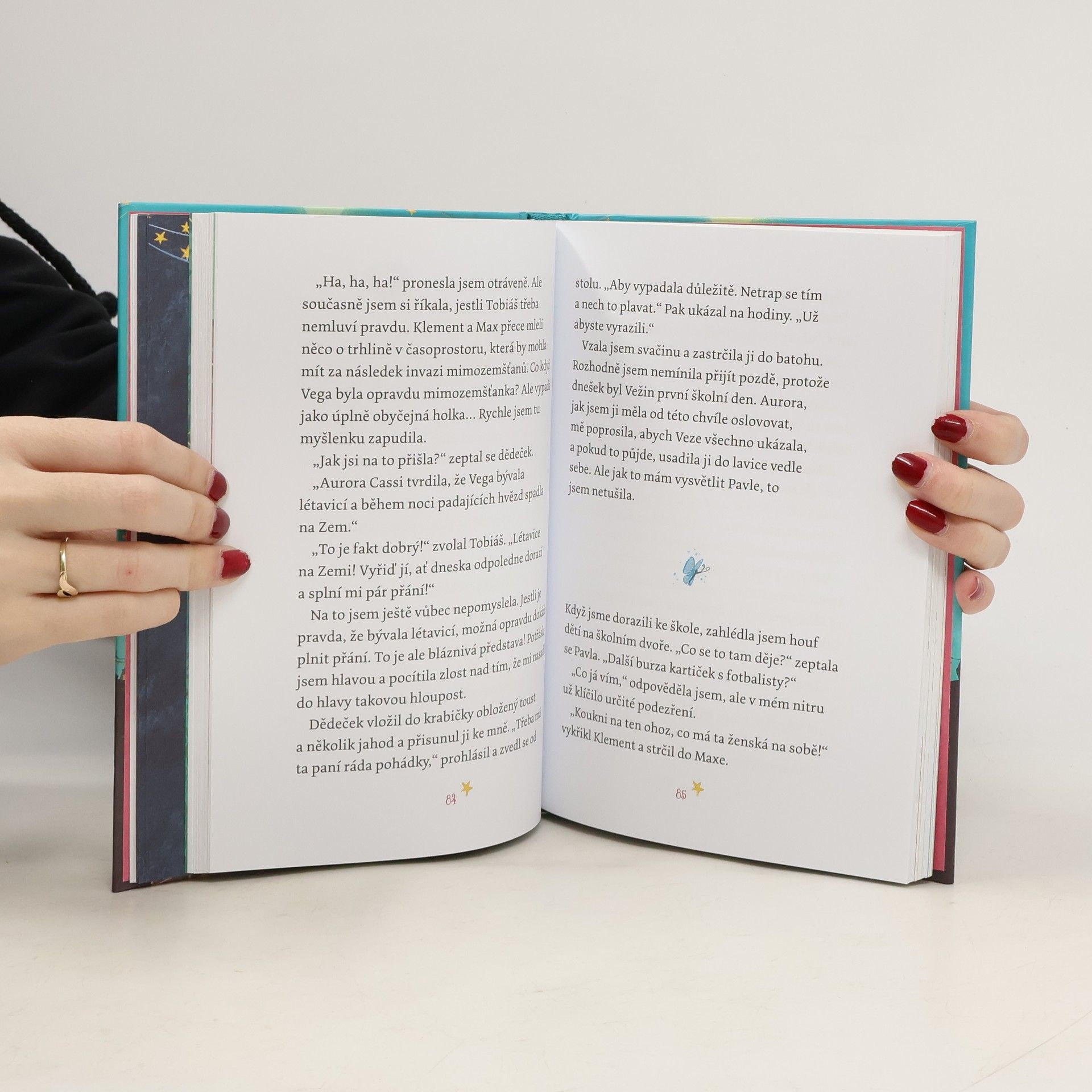 V létě Stela nejradši přespává ve svém stromovém domku. Má odtud dokonalý výhled na nebe a může v klidu pozorovat hvězdy. Po jedné zvlášť vydařené noci plné padajících hvězd se na zahradě zničehonic objeví cizí děvčátko v zářivě bílých šatech. Vega tvrdí, že spadla z oblohy. Je opravdu létavice? A skutečně umí plnit přání? Těch má totiž Stelina rodina spoustu! Kniha je určena dětem od 8 let.