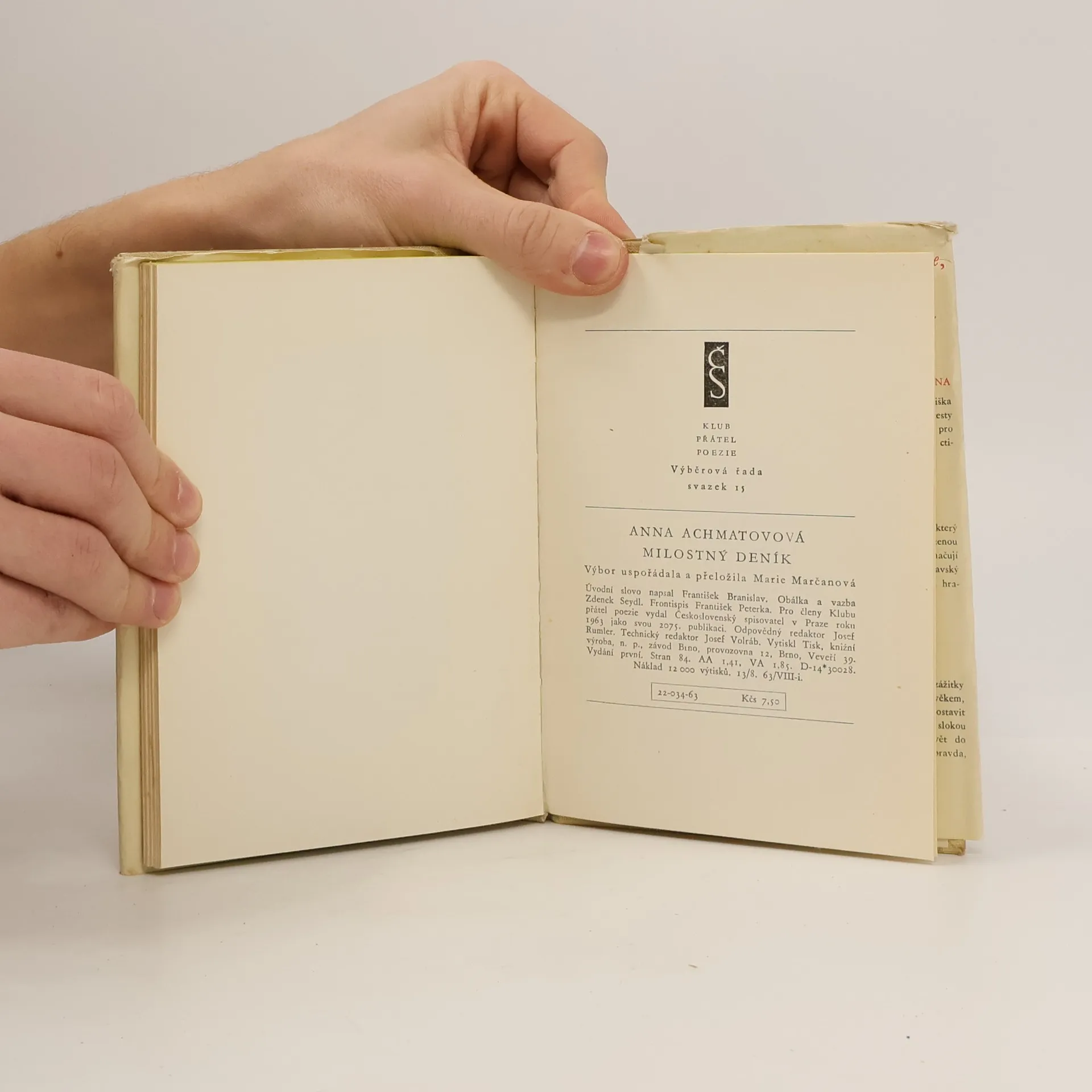 Výbor z Achmatovové lyriky z let 1909 - 1960 uspořádala a přeložila Marie Marčanová. Úvodní slova napsal František Branislav. Vydání první, v rámci Výběrové řady Klubu přátel poezie.