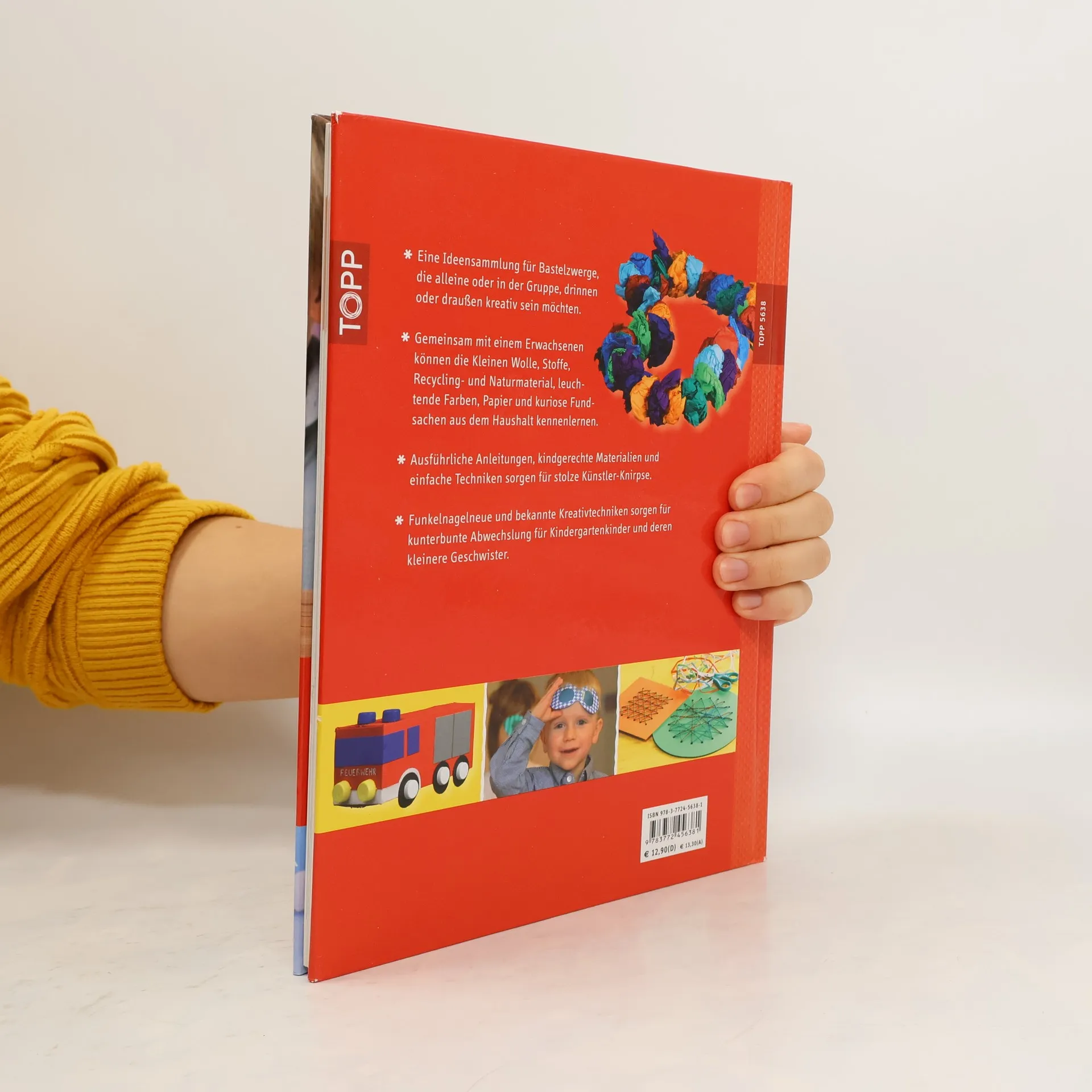 Eine Ideensammlung für Bastelzwerge, die alleine oder in der Gruppe, drinnen oder draußen kreativ sein möchten. Nigelnagelneue und bekannte Kreativtechniken sorgen für kunterbunte Abwechslung, für Kindergartenkinder und deren kleineren Geschwister. Gemeinsam mit einem Erwachsenen können die Kleinen Wolle, Stoff, Recycling- und Naturmaterial, leuchtende Farben, Papier und kuriose Fundsachen aus dem Haushalt kennenlernen und verarbeiten. Ausführliche Anleitungen, kindgerechte Materialien und einfache Techniken sorgen für stolze Künstler-Knirpse. 108 Seiten, 19 x 26,5 cm, Hardcover