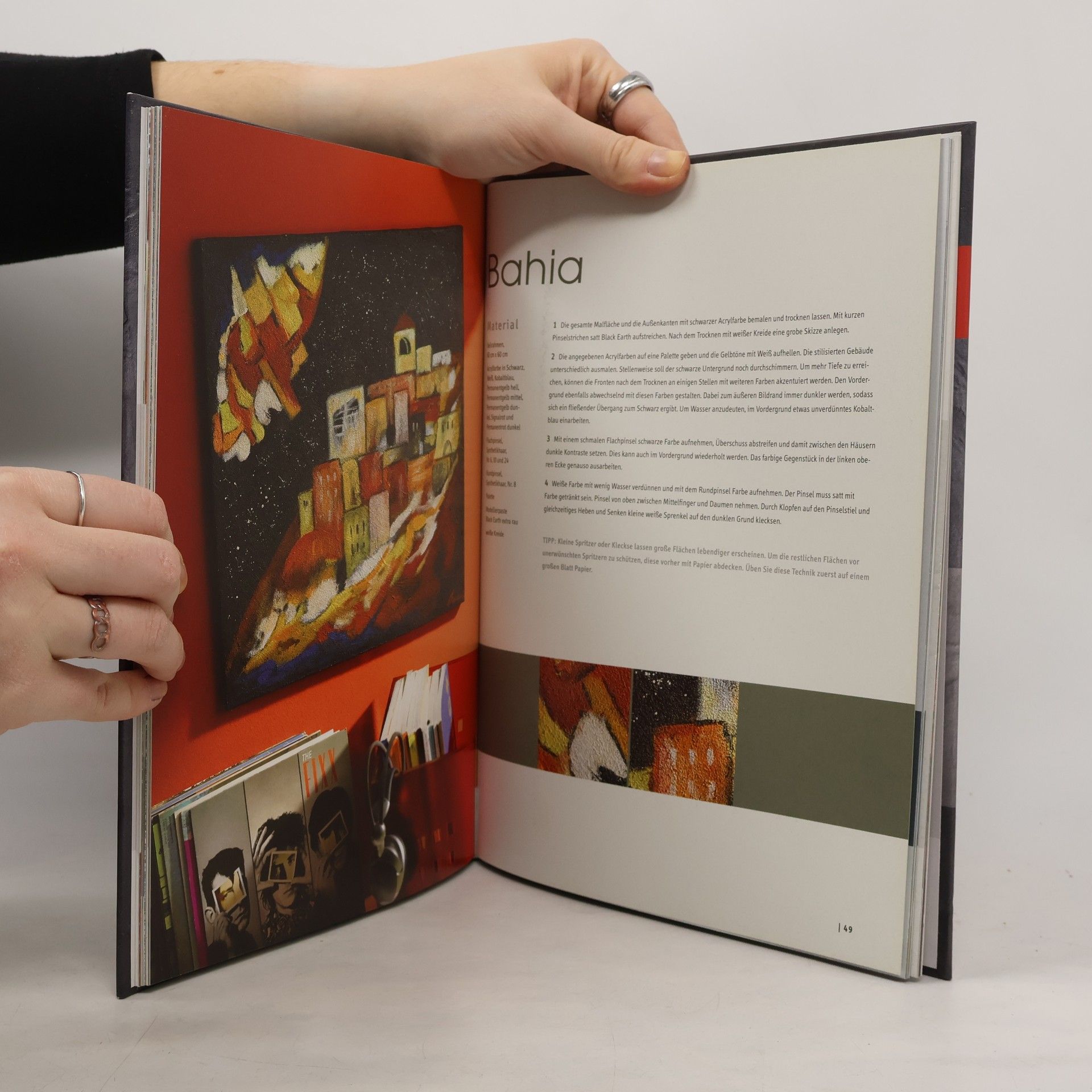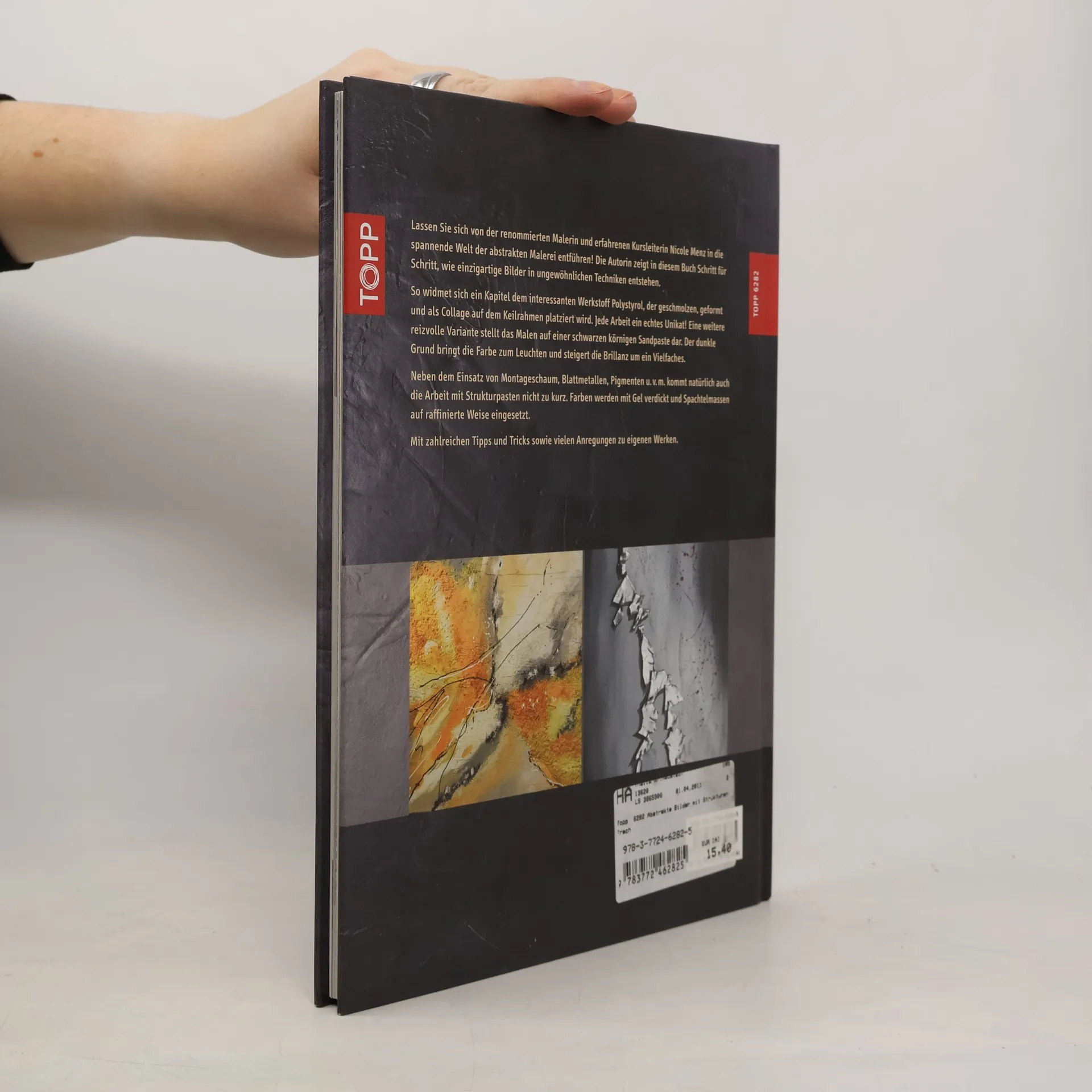 Die renommierte Malerin und erfahrene Kursleiterin Nicole Menz zeigt in diesem Buch Schritt für Schritt, wie einzigartige Bilder in ungewöhnlichen Techniken entstehen. So widmet sich ein Kapitel dem interessanten Werkstoff Acrylglas, das geschmolzen, geformt und als Collage auf dem Keilrahmen platziert wird. Jede Arbeit ein echtes Unikat! Eine weitere reizvolle Variante stellt das Malen auf einer schwarzen körnigen Sandpaste dar. Der dunkle Grund bringt die Farbe zum Leuchten und steigert die Brillanz um ein Vielfaches. Neben dem Einsatz von Montageschaum, Blattmetallen, Pigmenten u. v. m. kommt natürlich auch die Arbeit mit Strukturpasten nicht zu kurz. Farben werden mit Gel verdickt und Spachtelmassen auf raffinierte Weise eingesetzt. 80 Seiten, 21 x 28 cm, Premium-Hardcover