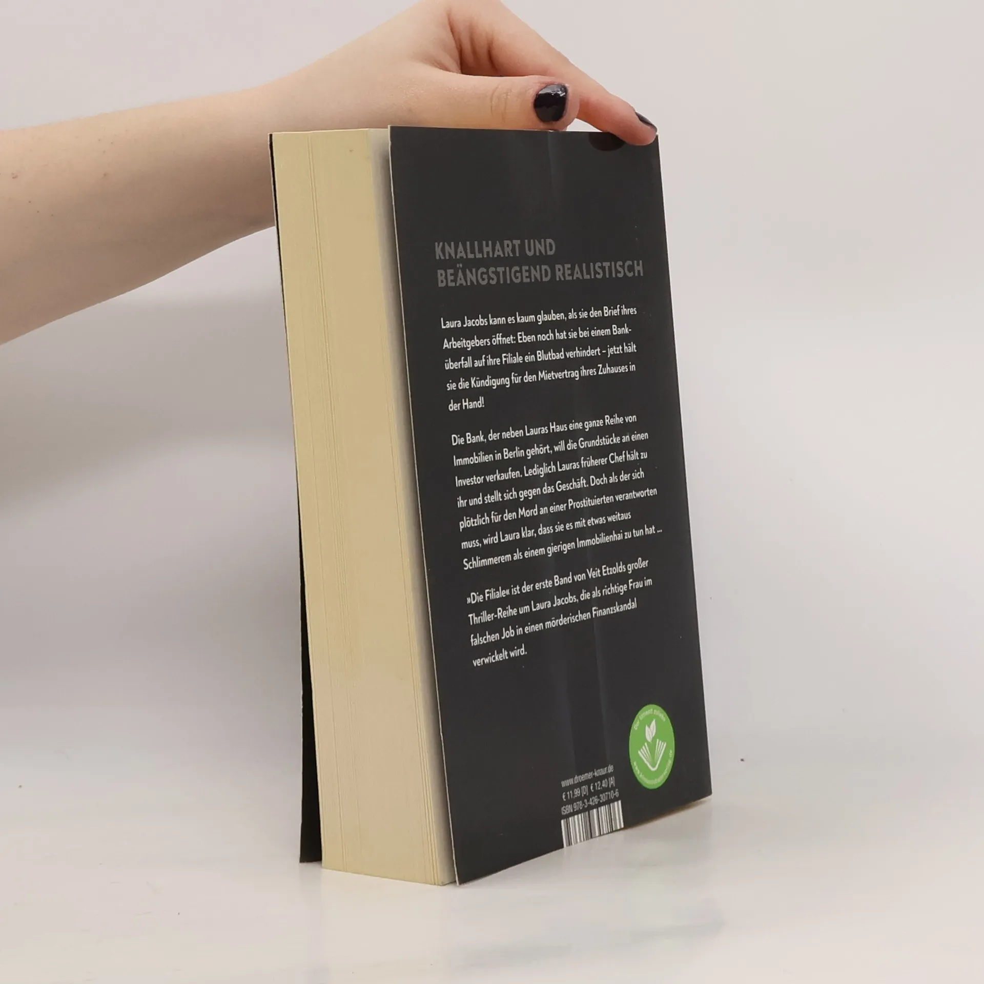 Eine junge Frau stellt sich gegen das System In diesem ersten Band von Veit Etzolds Thriller-Reihe wird Laura Jacobs, eine Bankerin, in einen mörderischen Finanzskandal verwickelt. Nach einem dramatischen Banküberfall, bei dem sie ein Blutbad verhindert, erhält sie die Kündigung für ihren Mietvertrag. Die Bank plant, ihre Immobilien in Berlin an einen Investor zu verkaufen, und nur ihr früherer Chef steht ihr zur Seite. Doch als er plötzlich wegen des Mordes an einer Prostituierten verhaftet wird, erkennt Laura, dass sie es mit weit größeren Gefahren als einem gierigen Immobilienhai zu tun hat. Veit Etzold thematisiert in seinem packenden Thriller die drängenden Probleme von Wohnungsnot und Immobilienkriminalität. Er gewährt Einblicke in die Bankenwelt, die so noch nie dargestellt wurden, und erzählt von dem mutigen Kampf einer jungen Frau gegen ein übermächtiges System. Entdecken Sie auch die anderen Thriller von Veit Etzold: Todesdeal (Rohstoff-Krieg im Kongo), Dark Web (Cyber-Terrorismus), Staatsfeind (Verschwörungsszenario in Deutschland) und Final Control (digitale Kontrolle zwischen China und Europa).