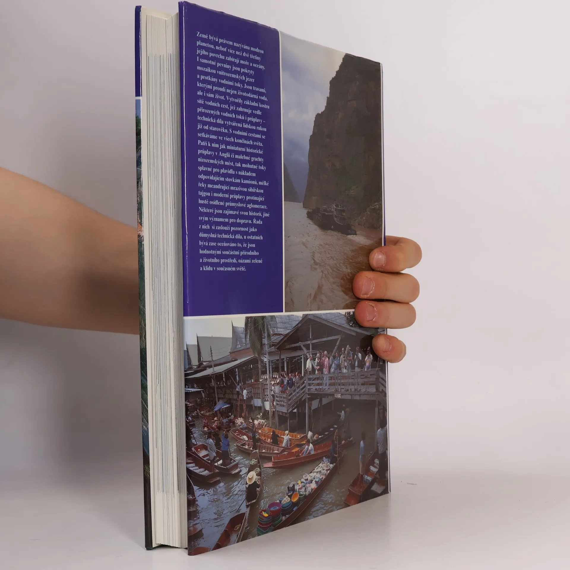1. vydání Země bývá právem nazývána modrou planetou, neboť více než dvě třetiny jejího povrchu zabírají moře a oceány. I samotné pevniny jsou pokryty mozaikou vnitrozemských jezer a protkány vodními toky. Jsou trasami, kterými proudí nejen životodárná voda, ale i sám život. Vytvořily základní kostru sítě vodních cest, jež zahrnuje vedle přirozených vodních toků i průplavy technická díla vytvářená lidskou rukou již od starověku. S vodními cestami se setkáváme ve všech končinách světa. Patří k nim jak miniaturní historické průplavy v Anglii či malebné grachty nizozemských měst, tak mohutné toky splavné pro plavidla s nákladem odpovídajícím stovkám kamionů, mělké řeky meandrující mrazivou sibiřskou tajgou i moderní průplavy protínající hustě osídlené průmyslové aglomerace. Některé jsou zajímavé svou historií, jiné svým významem pro dopravu. Řada z nich si zaslouží pozornost jako důmyslná technická díla, u ostatních bývá zase oceňováno to, že jsou hodnotnými součástmi přírodního a životního prostředí, oázami zeleně a klidu v současném světě.