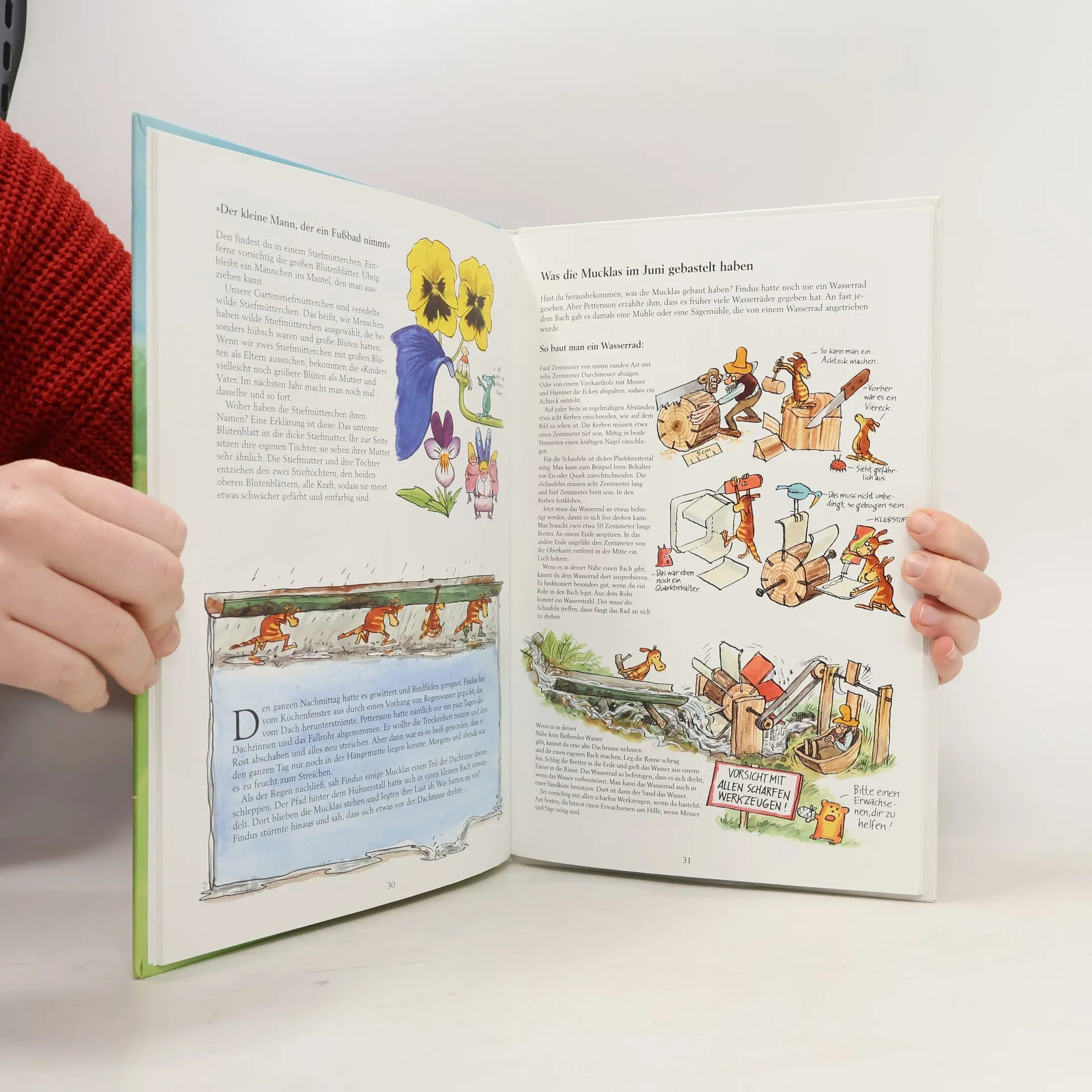 Beschäftigungsbuch rund ums Thema Natur für Kindergarten, Schule und Familie Wer Findus kennt, weiß, dass er ein temperamentvoller kleiner Kater ist, der den alten Pettersson ganz schön in Atem hält. Immer will er irgend etwas machen, bauen, untersuchen oder entdecken. Dieses Buch begleitet Findus, den alten Pettersson und die Mucklas - das sind die winzigen Wesen, die bei Pettersson unterm Küchenfußboden wohnen - von Januar bis Dezember, ein ganzes Jahr hindurch. Jeden Monat basteln, pflanzen oder erforschen sie etwas Neues und erklären, wie man es nachmachen kann. Das Schöne ist, dass man für fast alle Basteleien nur Dinge benötigt, die man garantiert immer irgendwo findet, im Haus oder draußen in der Natur, in Gärten und Wäldern, auf Wiesen oder am Wasser. Wie man einen Kräutergarten anlegt, Futterhäuschen und Nistkästen für Vögel baut, Segelschiffchen aus Baumrinde und Blättern bastelt und noch viel mehr - Findus zeigt, wie es geht. Praktische Tipps zum Gärtnern, Basteln und Erforschen für Kinder ab 4 Jahren Nicht nur für Fans von Pettersson und Findus Mit den Original-Illustrationen von Sven Nordqvist