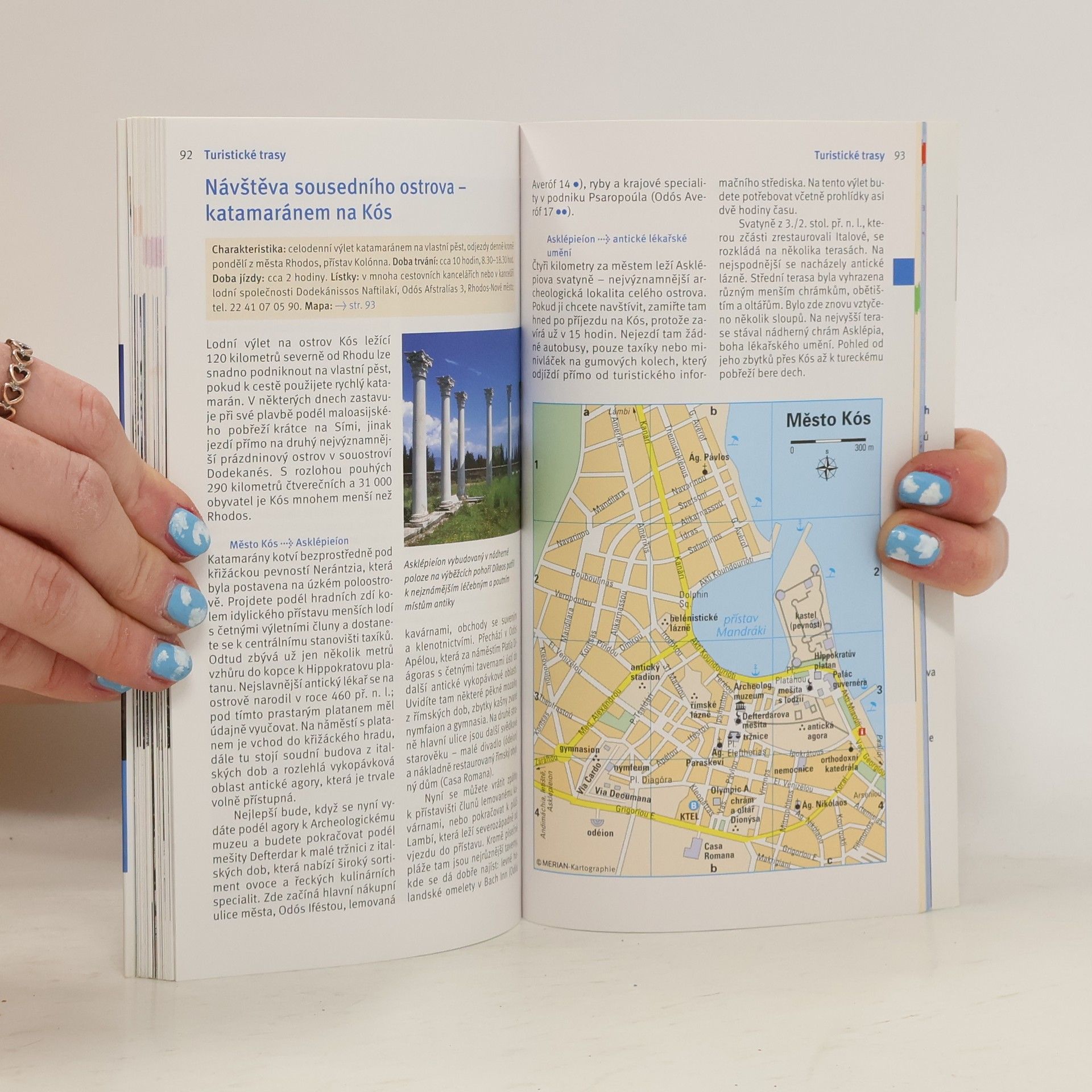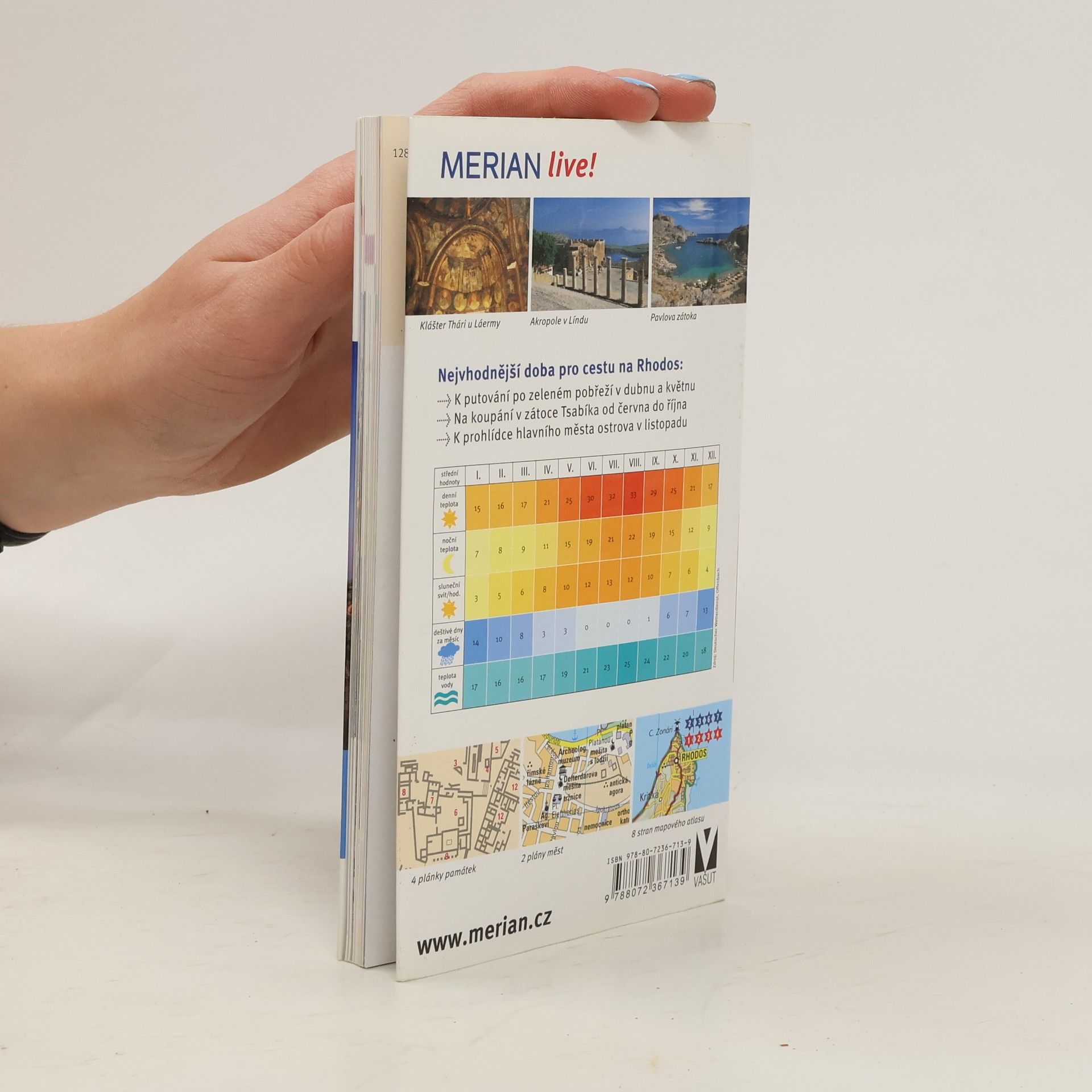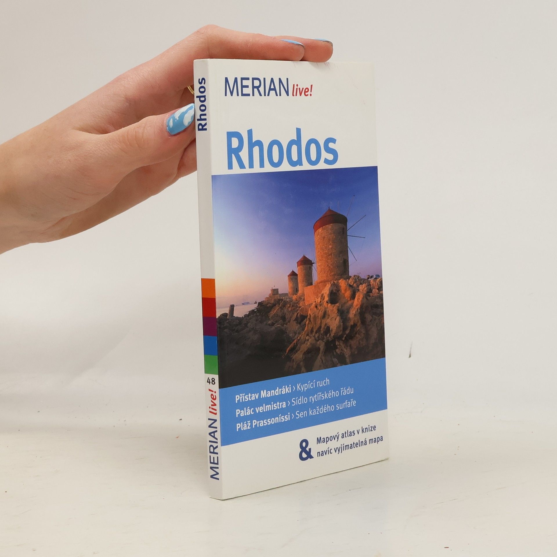 Průvodce seznamuje ve stručnosti s nejvýznamnějšími kulturně-uměleckými památkami a přírodními zajímavostmi jednoho z nejnavštěvovanějších řeckých ostrovů. Česká mutace jednoho ze svazků ediční řady cestovních průvodců "Merian" přináší popis architektonických, kulturně-uměleckých a přírodních pozoruhodností řeckého ostrova Rhodos v souostroví Dodekanéz. Mezi zajímavá místa, popsaná v průvodci patří stejnojmenné hlavní město, rekreační střediska na pobřeží Středozemního i Egejského moře (Faliraki, Kolymbia, Trianda) nebo zajímavé vnitrozemí (horský masiv Ataviros, zmemědělské vesnice na jihu, zříceniny středověkých obranných pevností a hradů, kláštery a poutní místa). Významnou součástí průvodce jsou praktické informace o možnostech ubytování a stravování, nákupů, kulturního vyžití nebo nabídkách akcí pro děti. Množství barevných fotografií v textu, přílohový mapový atlas, mapky a půdorysy nejvýznamnějších památek.