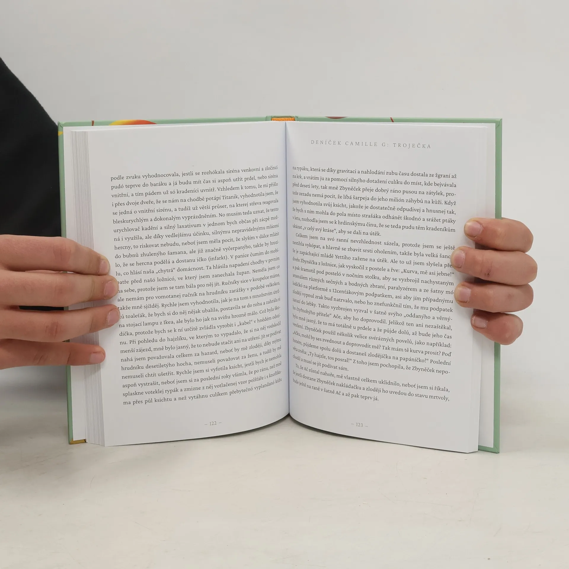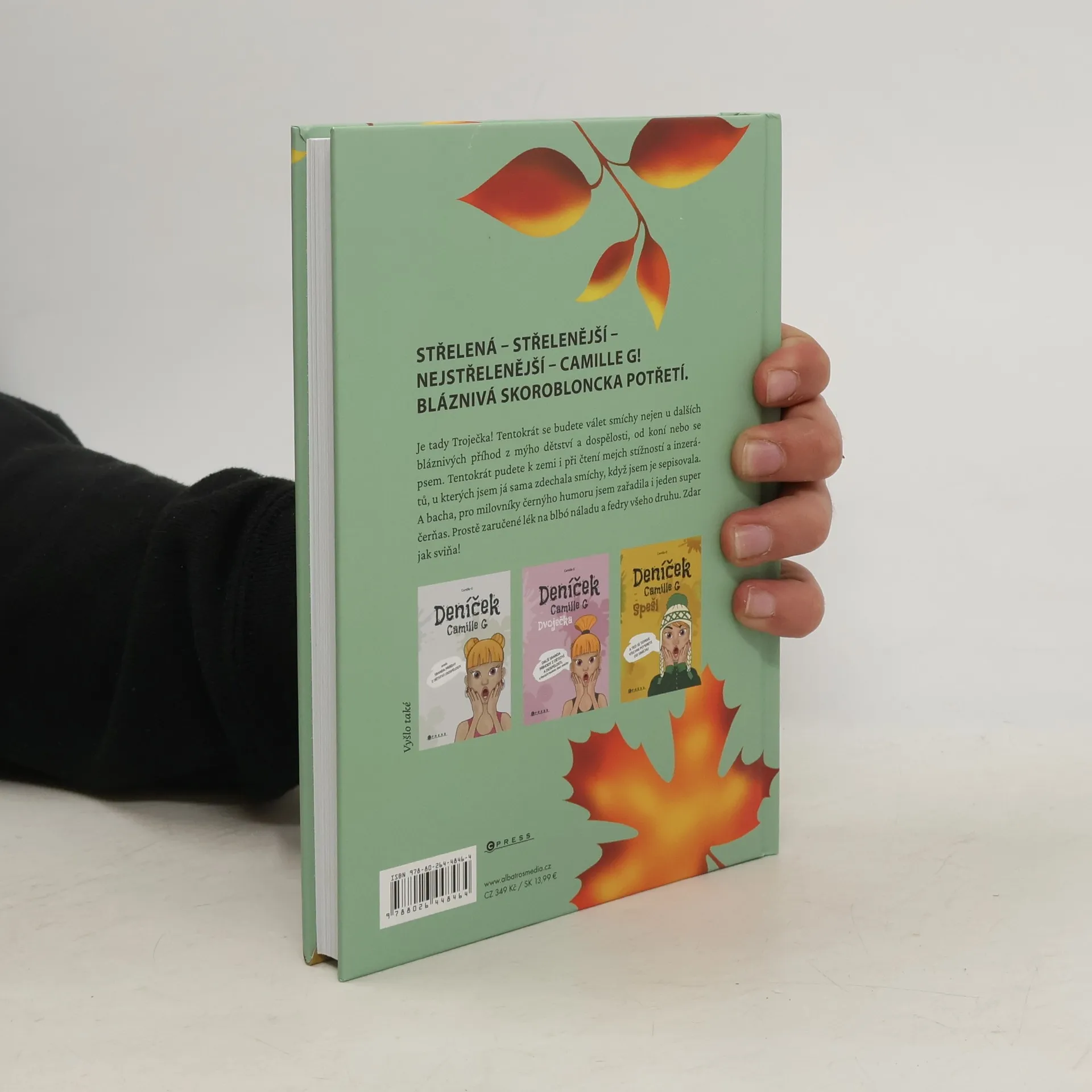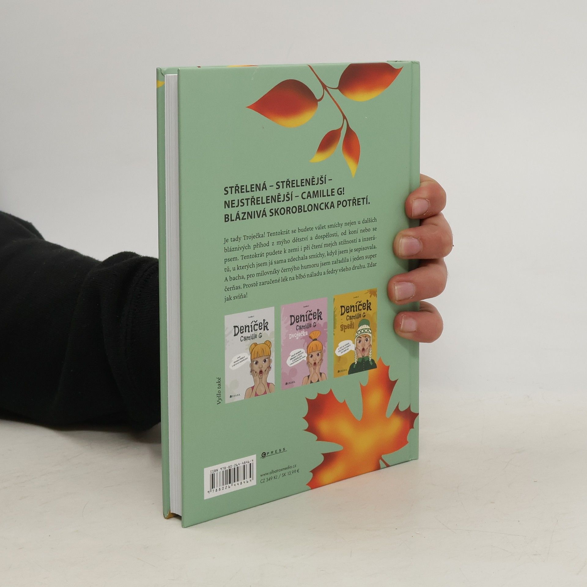 Střelená – střelenější – nejstřelenější – Camille G! Bláznivá skorobloncka potřetí.Je tady Troječka! Tentokrát se budete válet smíchy nejen u dalších bláznivých příhod z mýho dětství a dospělosti, od koní nebo se psem. Tentokrát pudete k zemi i při čtení mejch stížností a inzerátů, u kterých jsem já sama zdechala smíchy, když jsem je sepisovala. A bacha, pro milovníky černýho humoru jsem zařadila i jeden super čerňas. Prostě zaručené lék na blbó náladu a fedry všeho druhu. Zdar jak sviňa!