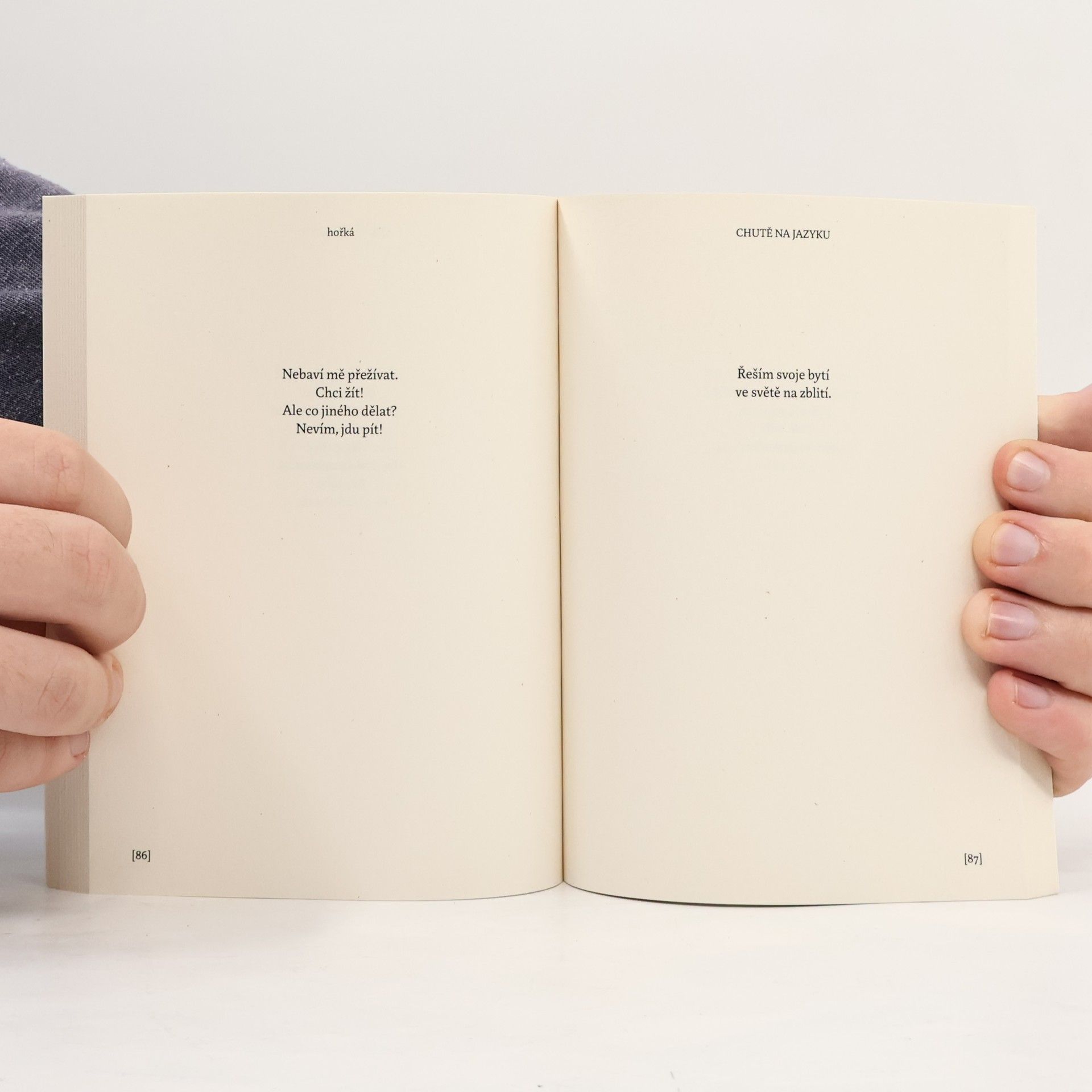 Má první kniha. Má láska. Kniha je rozdělena do 5 chutí na jazyku (sladká, hořká, kyselá, slaná, umami) dle nálady, která mě provázela při psaní. Je lechtivá i smutná, vtipná a divná. Jako autor sám. Rád šukám tvoji siluetu za svitu noční lampy, kdy koukáme z okna na sousedy. Ukazujeme naši rozkoš světu, kdy opřenou tě mám na parapetu.