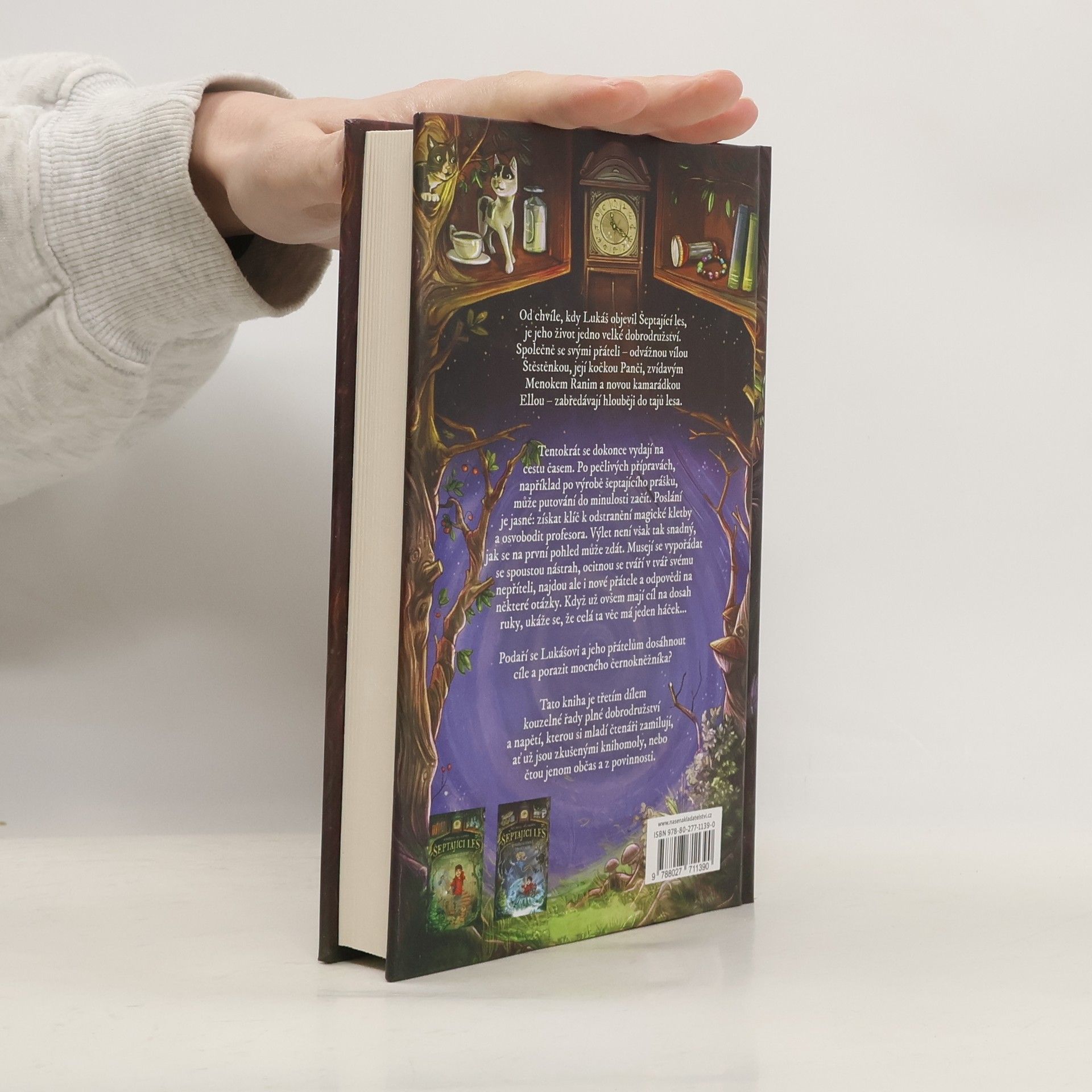 Od chvíle, kdy Lukáš objevil Šeptající les, je jeho život jedno velké dobrodružství. Společně se svými přáteli – odvážnou vílou Štěstěnkou, její kočkou Panči, zvídavým menokem Ranim a novou kamarádkou Ellou – zabředávají stále hlouběji do tajů lesa.Tentokrát se dokonce vydají na cestu časem. Po pečlivých přípravách, jako je například výroba šeptajícího prášku, může jejich putování do minulosti začít. Poslání má jasný cíl: najít a získat klíč k odstranění magické kletby a osvobodit profesora. Jejich výlet není však tak snadný, jak se na první pohled může zdát. Musejí se vypořádat s řadou nástrah, ocitnou se tváří v tvář svému nepříteli, mocnému černokněžníkovi, najdou ale i nové přátele a odpovědi na některé své otázky. Když už mají cíl na dosah ruky, ukáže se, že celá ta věc má ale háček...Podaří se Lukášovi a jeho přátelům dosáhnout cíle a porazit černokněžníka?