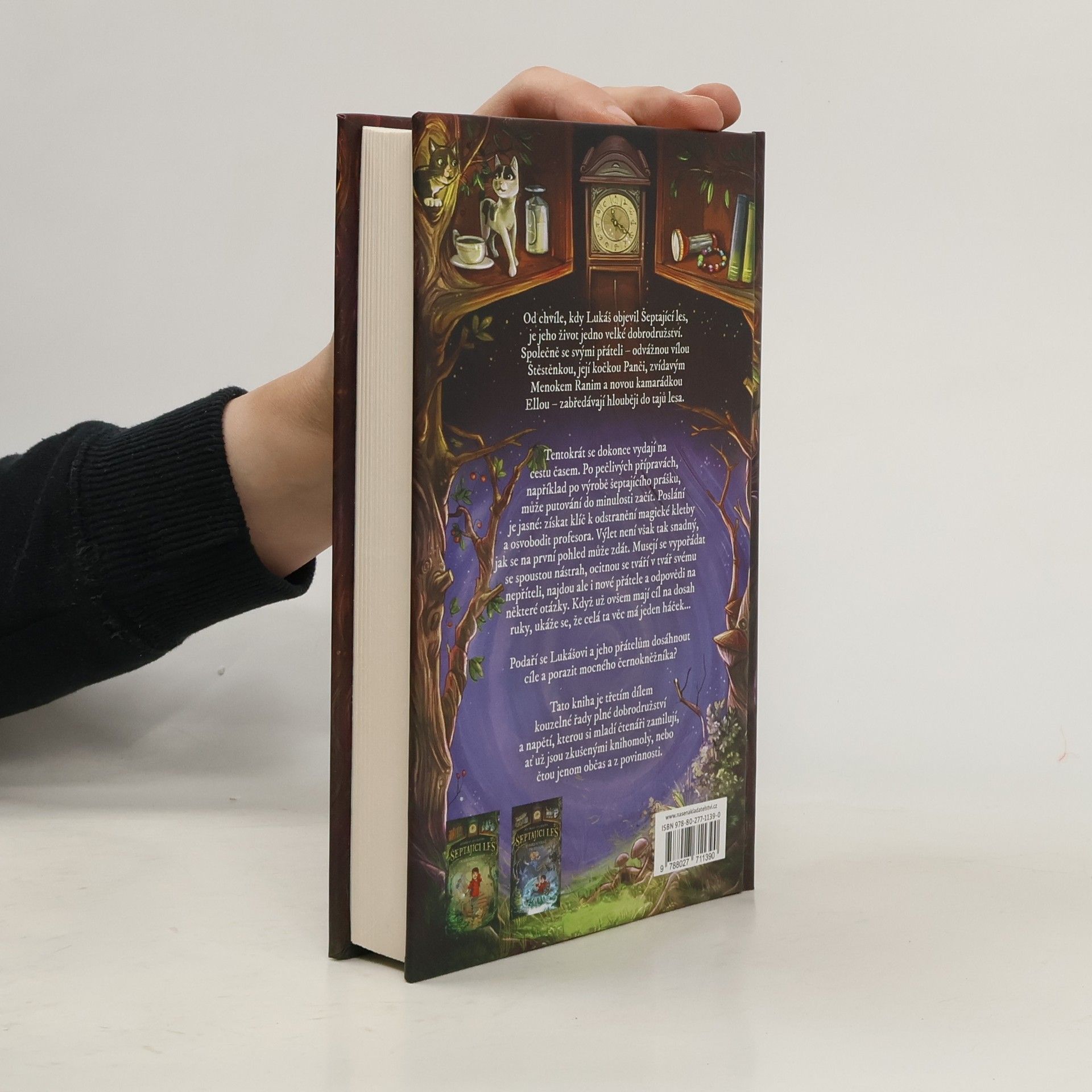 Od chvíle, kdy Lukáš objevil Šeptající les, je jeho život jedno velké dobrodružství. Společně se svými přáteli – odvážnou vílou Štěstěnkou, její kočkou Panči, zvídavým menokem Ranim a novou kamarádkou Ellou – zabředávají stále hlouběji do tajů lesa.Tentokrát se dokonce vydají na cestu časem. Po pečlivých přípravách, jako je například výroba šeptajícího prášku, může jejich putování do minulosti začít. Poslání má jasný cíl: najít a získat klíč k odstranění magické kletby a osvobodit profesora. Jejich výlet není však tak snadný, jak se na první pohled může zdát. Musejí se vypořádat s řadou nástrah, ocitnou se tváří v tvář svému nepříteli, mocnému černokněžníkovi, najdou ale i nové přátele a odpovědi na některé své otázky. Když už mají cíl na dosah ruky, ukáže se, že celá ta věc má ale háček...Podaří se Lukášovi a jeho přátelům dosáhnout cíle a porazit černokněžníka?