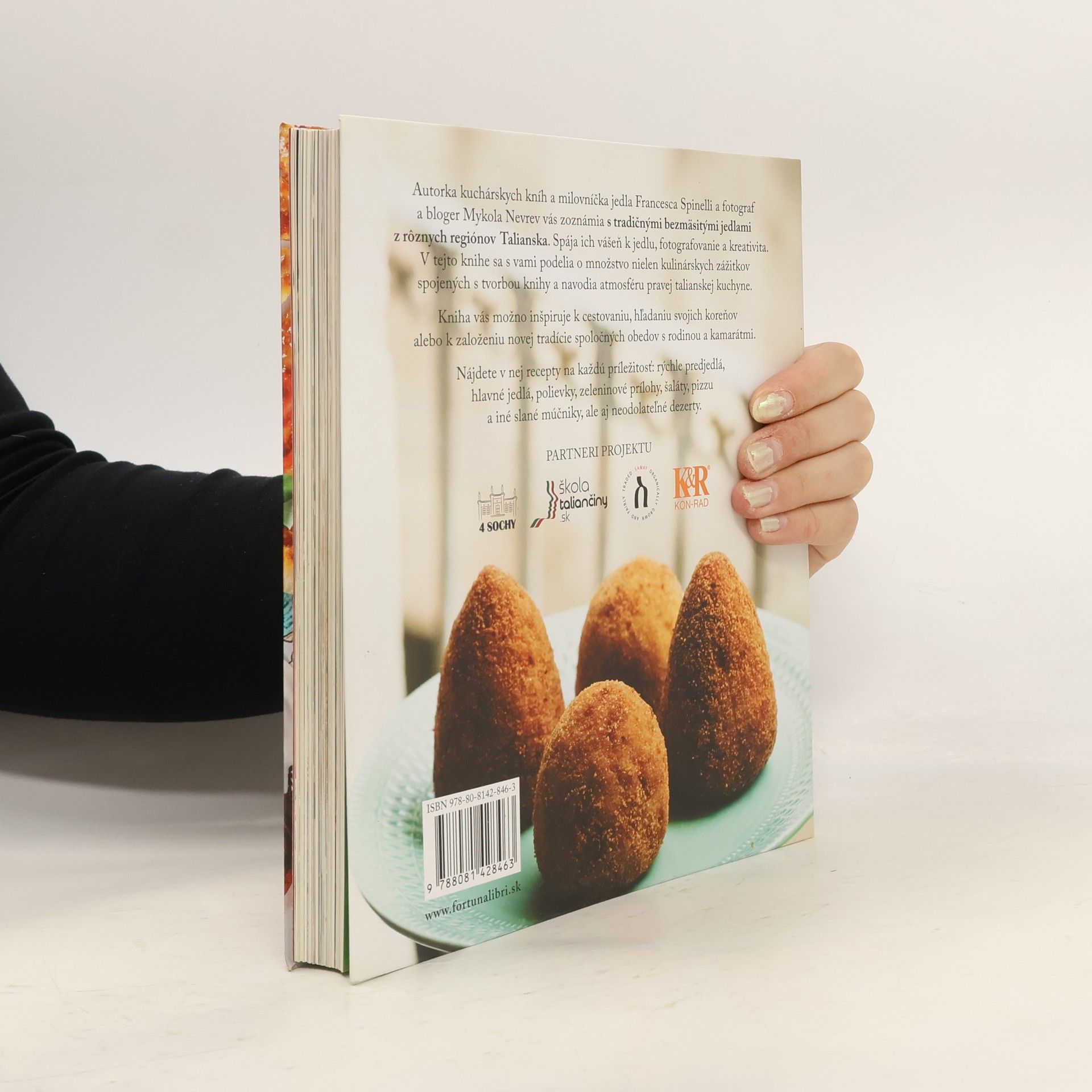 Autorka kuchárskych kníh a milovníčka jedla Francesca Spinelli a fotograf a bloger Mykola Nevrev vás zoznámia s tradičnými bezmäsitými jedlami z rôznych regiónov Talianska. Spája ich vášeň k jedlu, fotografovanie a kreativita. V tejto knihe sa s vami podelia o množstvo nielen kulinárskych zážitkov spojených s tvorbou knihy a navodia atmosféru pravej talianskej kuchyne. Kniha vás možno inšpiruje k cestovaniu, hľadaniu svojich koreňov alebo k založeniu novej tradície spoločných obedov s rodinou a kamarátmi. Nájdete v nej recepty na každú príležitosť: rýchle predjedlá, hlavné jedlá, polievky, zeleninové prílohy, šaláty, pizzu a iné slané múčniky, ale aj neodolateľné dezerty.