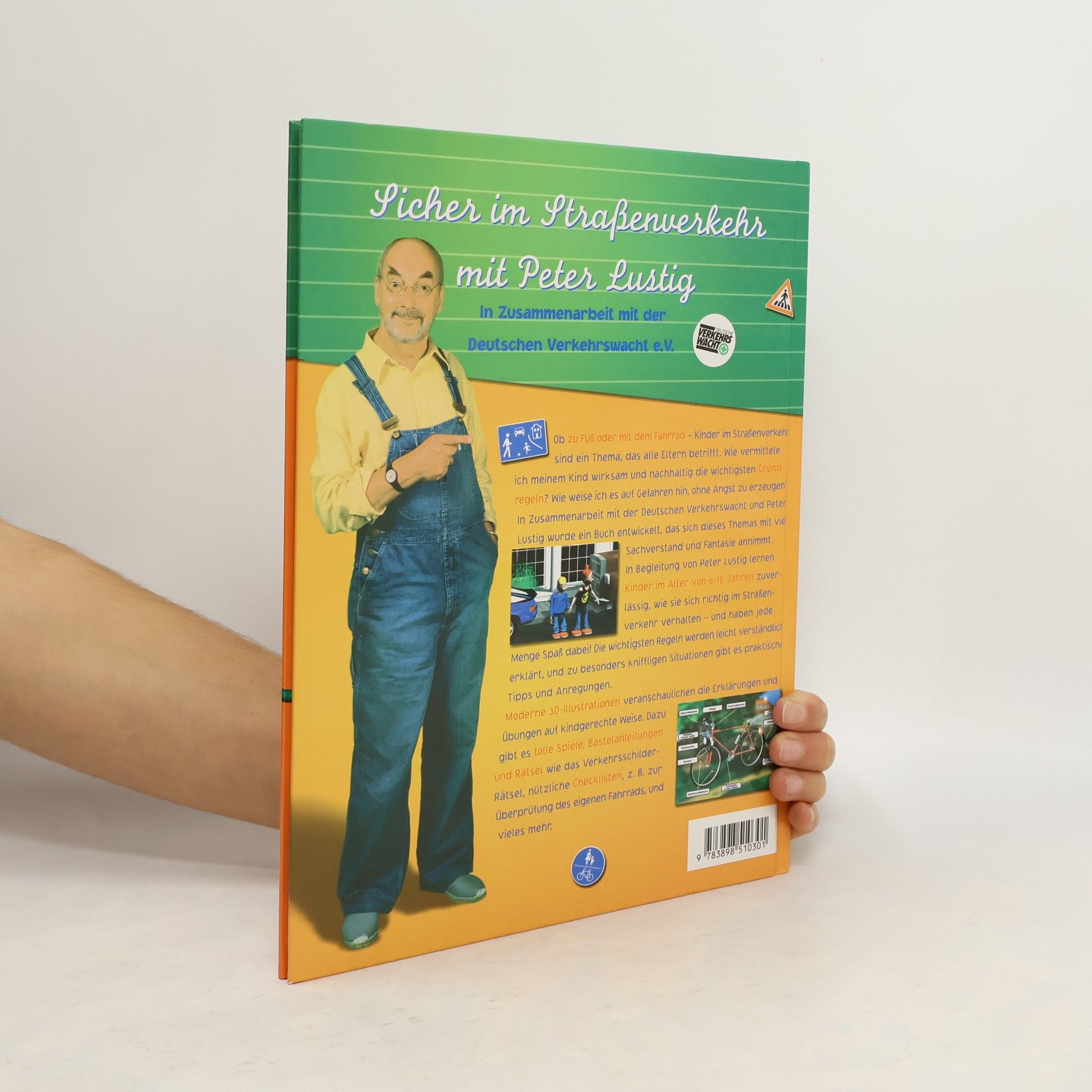 Ob zu Fuß oder mit dem Fahrrad - Kinder im Straßenverkehr sind ein Thema, das alle Eltern betrifft. Wie vermittele ich meinem Kind wirksam und nachhaltig die wichtigsten Grundregeln? Wie weise ich es auf Gefahren hin, ohne Angst zu erzeugen? In Zusammenarbeit mit der Deutschen Verkehrswacht und Peter Lustig wurde ein Buch entwickelt, das sich dieses Themas mit viel Sachverstand und Fantasie annimmt. In Begleitung von Peter Lustig lernen Kinder im Alter von 6-10 Jahren zuverlässig, wie sie sich richtig im Straßenverkehr verhalten - und haben jede Menge Spaß dabei! Die wichtigsten Regeln werden leicht verständlich erklärt, und zu besonders kniffligen Situationen gibt es praktische Tipps und Anregungen. Moderne 3D-Illustrationen veranschaulichen die Erklärungen und Übungen auf kindgerechte Weise. Dazu gibt es tolle Spiele, Bastelanleitungen und Rätsel wie das Verkehrsschilder-Rätsel, nützliche Checklisten, z. B. zur Überprüfung des eigenen Fahrrads, und vieles mehr.