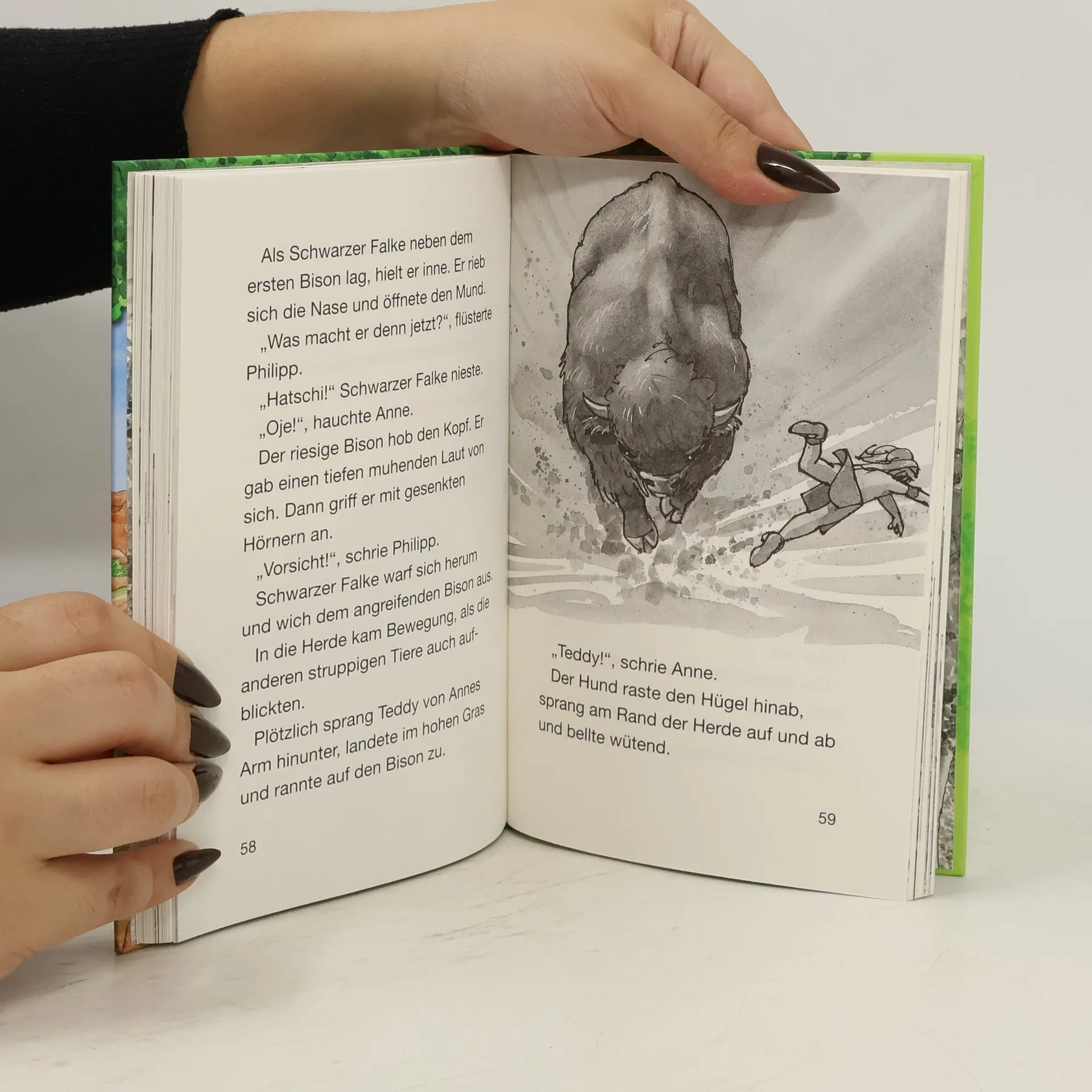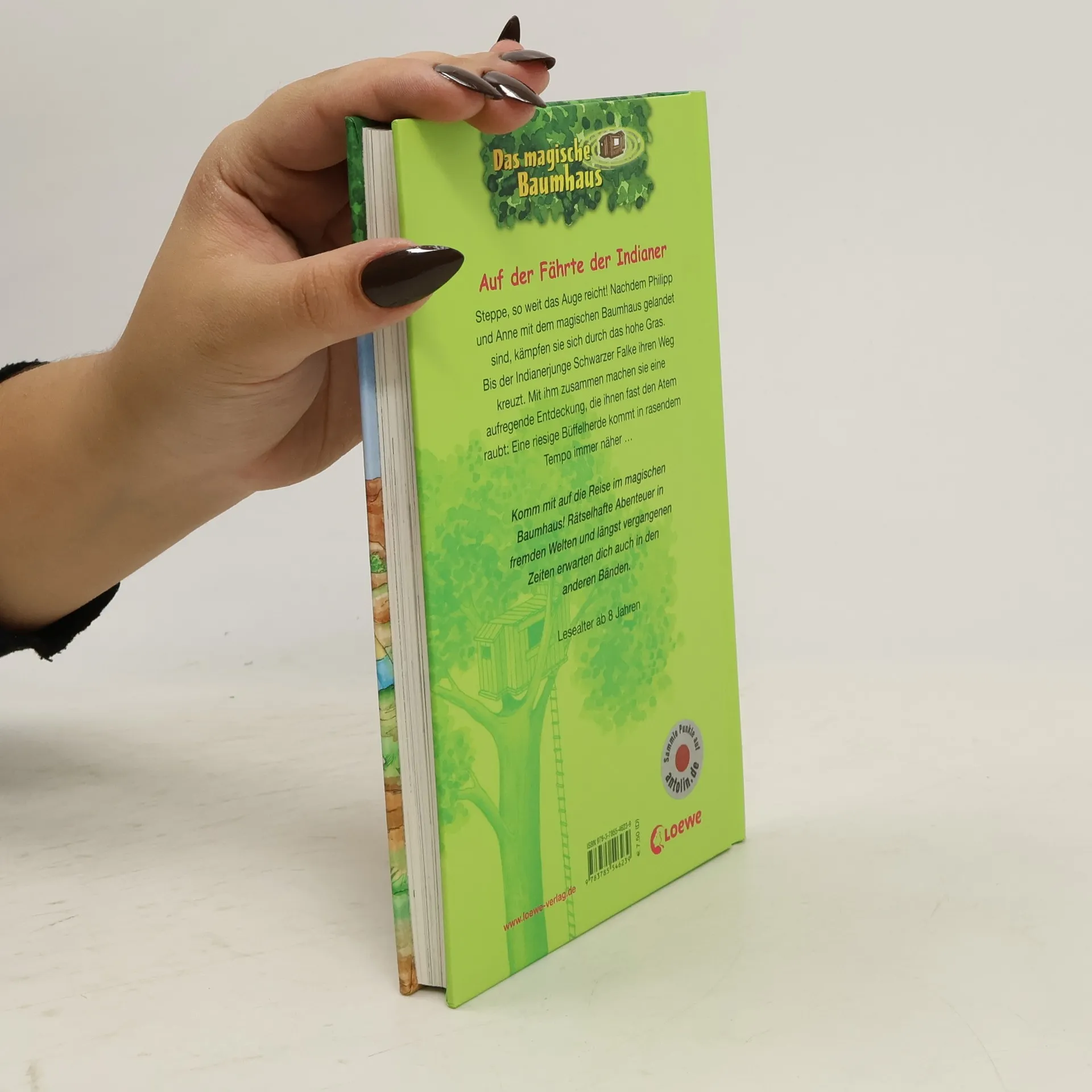 Steppe, so weit das Auge reicht! Nachdem Philipp und Anne mit dem magischen Baumhaus gelandet sind, kämpfen sie sich durch das hohe Gras. Bis der Indianerjunge Schwarzer Falke ihren Weg kreuzt. Mit ihm zusammen machen sie eine aufregende Entdeckung, die ihnen fast den Atem raubt: eine riesige Büffelherde kommt in rasendem Tempo immer näher auf sie zu ... Komm mit auf die Reise im magischen Baumhaus! Rätselhafte Abenteuer in fremden Welten und längst vergangenen Zeiten erwarten dich auch in den nächsten Bänden. Die beliebte Kinderbuch-Reihe von Bestsellerautorin Mary Pope Osborne! Die Geschwister Anne und Philipp reisen mit dem magischen Baumhaus durch die Zeit. Sie erleben spannende Abenteuer, entdecken ferne Länder und lernen viele berühmte Persönlichkeiten kennen.