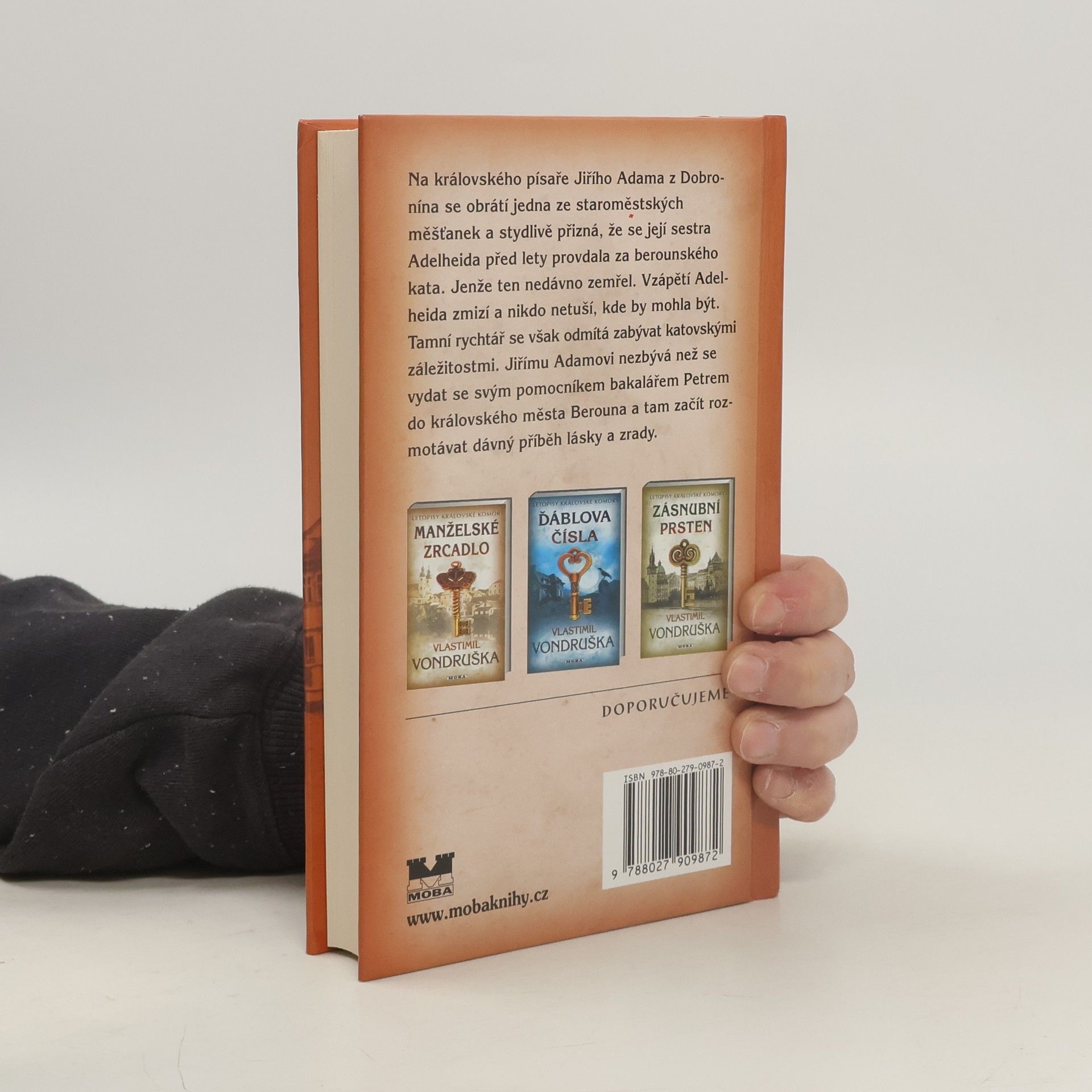 Na královského písaře Jiřího Adama z Dobronína se obrátí jedna ze staroměstských měšťanek a stydlivě přizná, že se její sestra Adelheida před lety provdala za berounského kata. Nedávno její muž zemřel a odkázal jí cosi podivného. Vzápětí Adelheida zmizela a nikdo netuší, kde by mohla být. Tamní rychtář se však odmítl zabývat katovskými záležitostmi. Jiřímu Adamovi nezbývá, než se vydat se svým pomocníkem bakalářem Petrem do královského města Berouna a tam začít rozmotávat dávný příběh lásky a zrady.