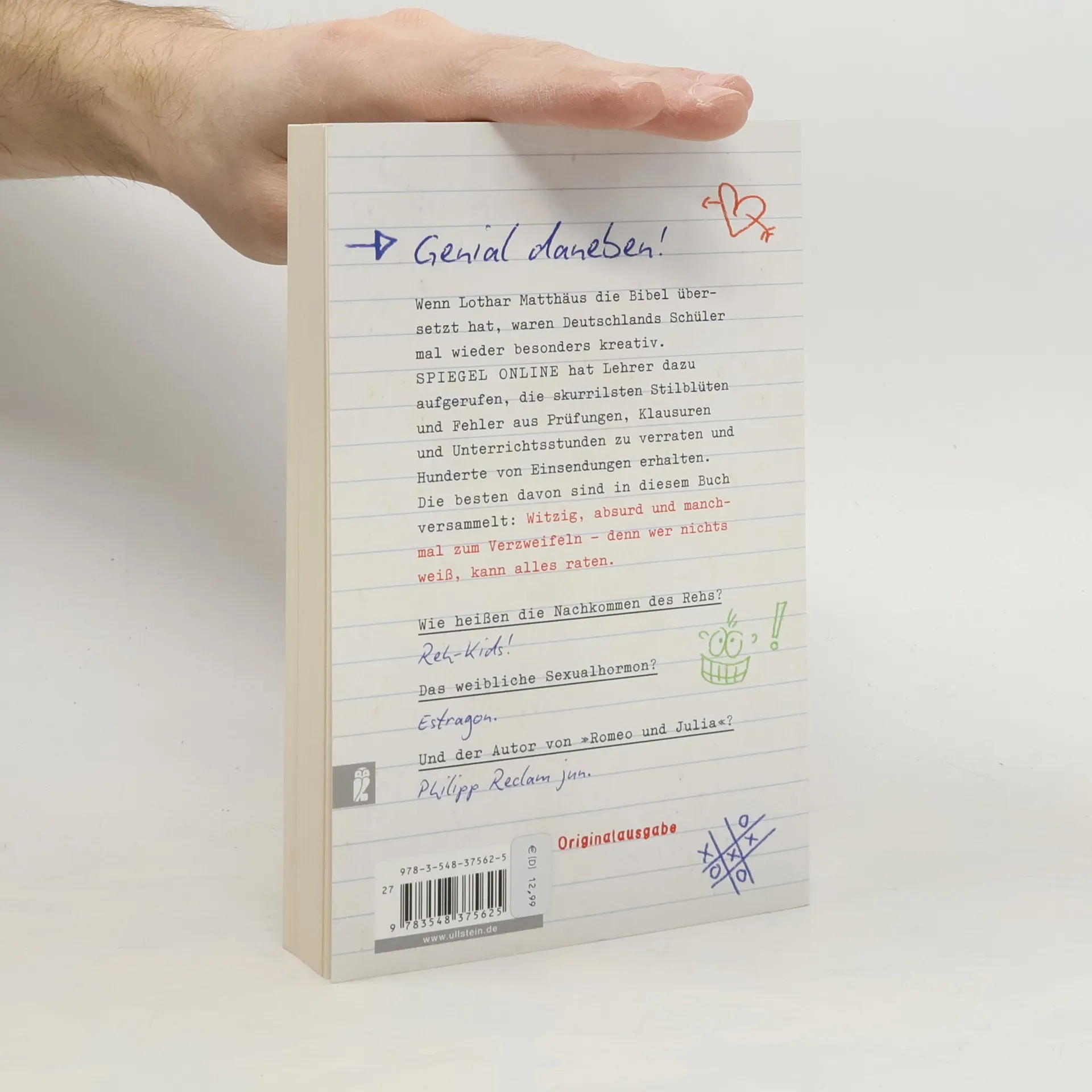 Wenn Lothar Matthäus die Bibel übersetzt hat, waren Deutschlands Schüler mal wieder besonders kreativ. SPIEGEL ONLINE hat Lehrer dazu aufgerufen, die skurrilsten Stilblüten und Fehler aus Prüfungen, Klausuren und Unterrichtsstunden zu verraten und Hunderte von Einsendungen erhalten. Die besten davon sind in diesem Buch versammelt: Ein Beispiel für eine heimische Vogelart? Das Rotkäppchen. Das weibliche Sexualhormon? Estragon. Und Deutschlands bekannte Nadelbäume? Tanne, Fichte und Oberkiefer. Witzig, absurd und manchmal zum Verzweifeln – denn wer nichts weiß, kann alles raten.