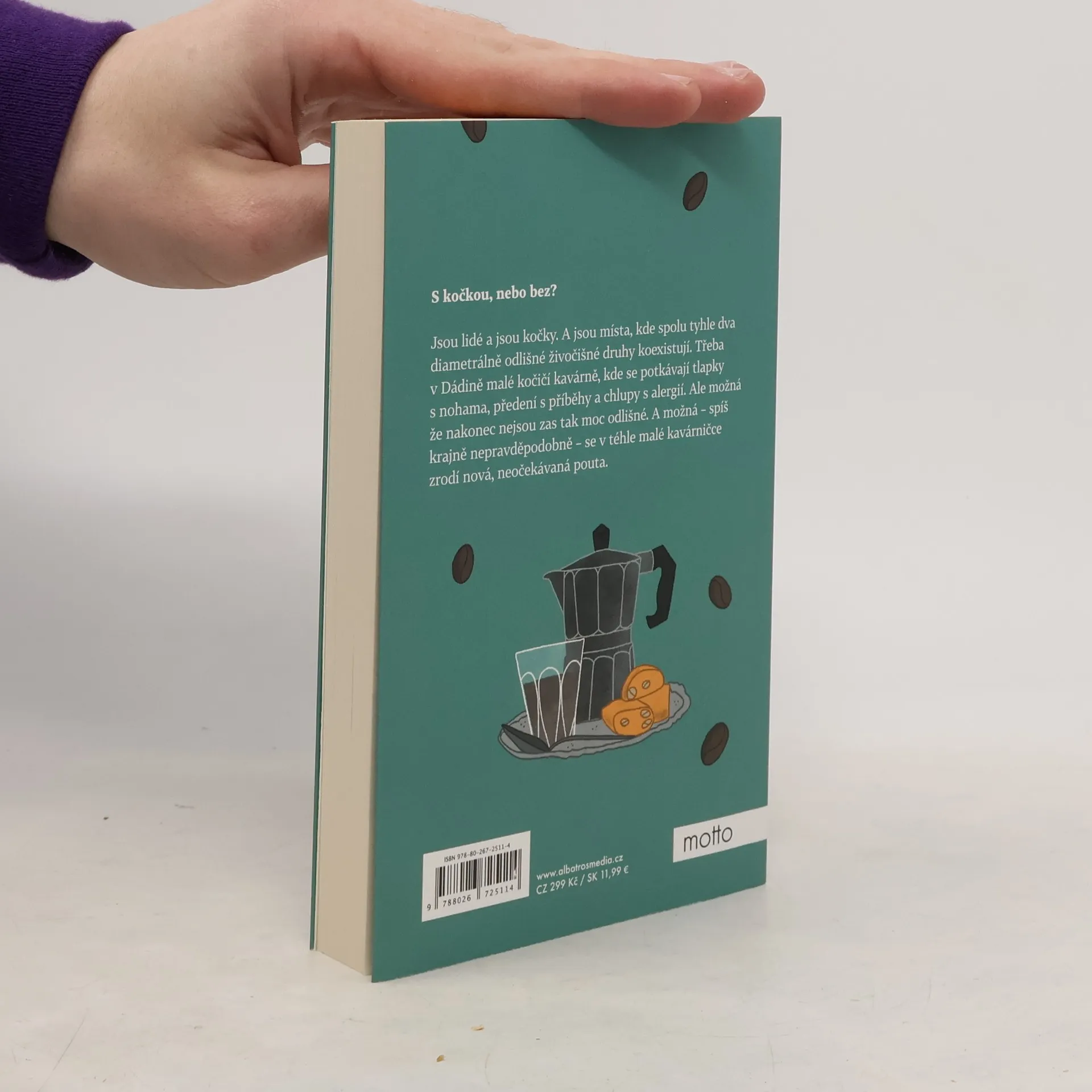 S kočkou, nebo bez?Jsou lidé a jsou kočky. A jsou místa, kde spolu tyhle dva diametrálně odlišné živočišné druhy koexistují. Třeba v Dádině malé kočičí kavárně, kde se potkávají tlapky s nohama, předení s příběhy a chlupy s alergií. Ale možná že nakonec nejsou zas tak moc odlišné. A možná – spíš krajně nepravděpodobně – se v téhle malé kavárničce zrodí nová, neočekávaná pouta.