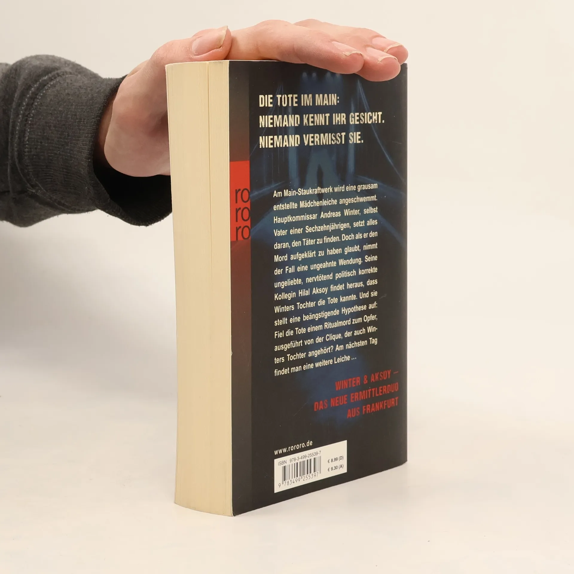 Die Tote im Main: Niemand kennt ihr Gesicht. Niemand vermisst sie.Am Main-Staukraftwerk wird eine grausam entstellte Mädchenleiche angeschwemmt. Hauptkommissar Andreas Winter, selbst Vater einer Sechzehnjährigen, setzt alles daran, den Täter zu finden. Doch als er den Mord aufgeklärt zu haben glaubt, nimmt der Fall eine ungeahnte Wendung. Seine ungeliebte, nervtötend politisch korrekte Kollegin Hilal Aksoy findet heraus, dass Winters Tochter die Tote kannte. Und sie stellt eine beängstigende Hypothese auf: Fiel die Tote einem Ritualmord zum Opfer, ausgeführt von der Clique, der auch Winters Tochter angehört? Am nächsten Tag findet man eine weitere Leiche ...Winter & Aksoy — das neue Ermittlerduo aus Frankfurt