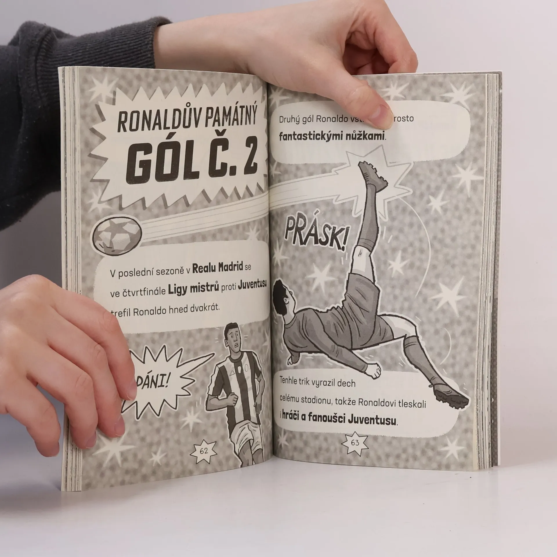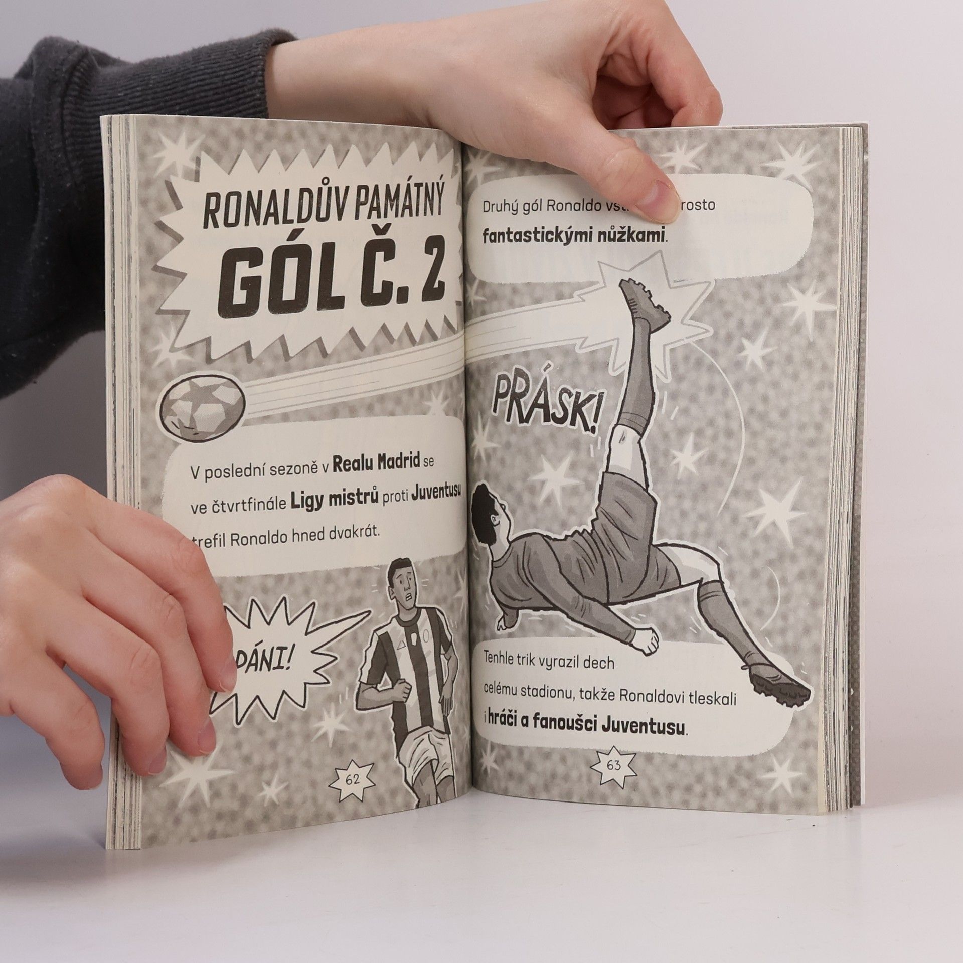 Přečti si, jak se Cristiano Ronaldo vypracoval z kluka, co nakopával v ulicích Madeiry plastové láhve v evropskou fotbalovou ikonu a jednoho z nejslavnějších sportovců světa. Čím je tak mimořádný? Třeba tím, že je jedním z nejrychlejších hráčů na hřišti. Je taky machr na patičky, kopání bodlem a nejrůznější kličky. Snadno vyskočí do výšky a skóruje hlavičkou a hlavně… dává spoustu gólů! Přečti si tenhle skvělý komiks a oslň kamarády vědomostmi o všem, co se Ronalda týká.