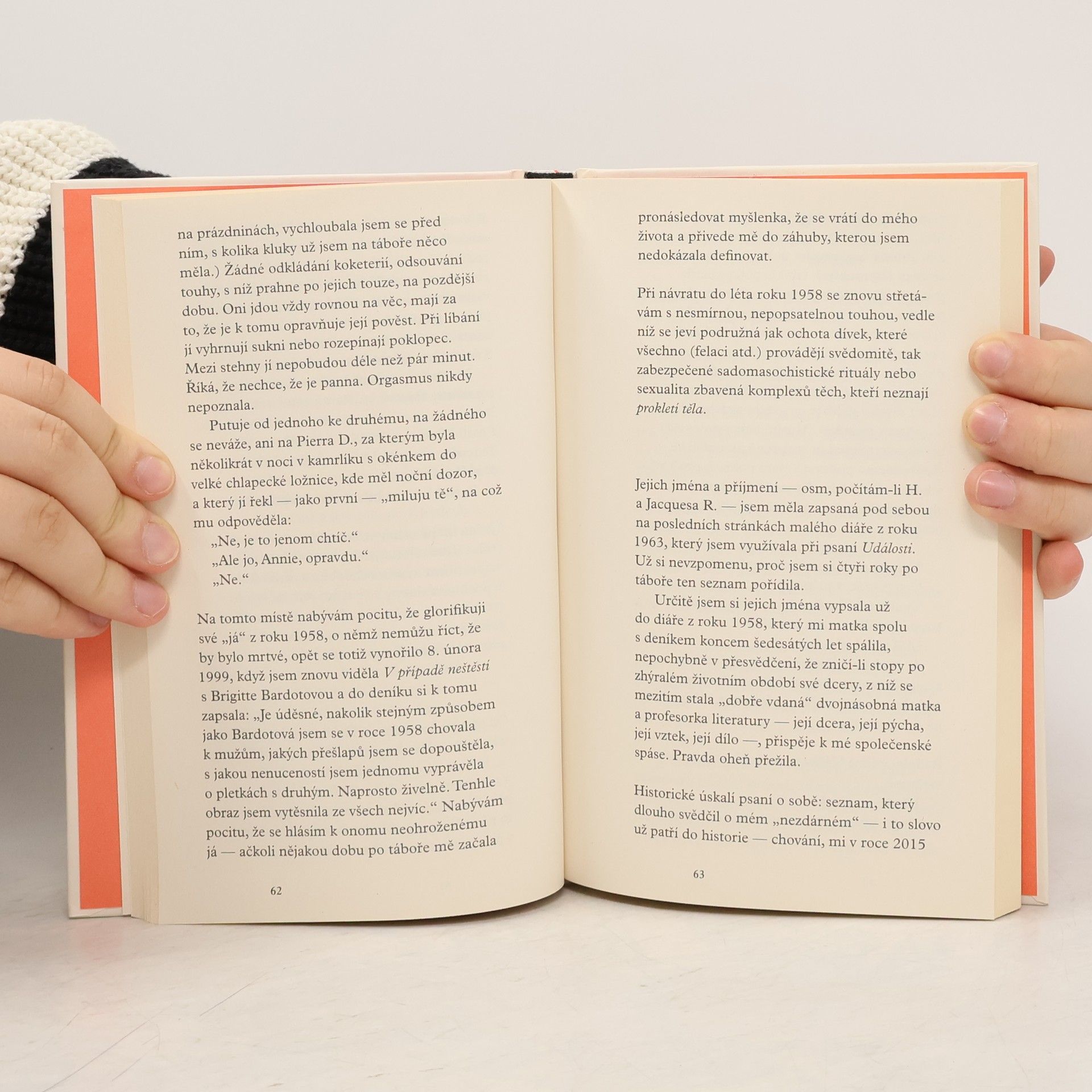 Vzpamatujeme se někdy z ponížení? V létě roku 1958 přijde osmnáctiletá Annie Ernauxová na letním táboře v Normandii o panenství. Teprve ve chvíli, kdy ji dvaadvacetiletý instruktor, se kterým stráví noc, opustí, si Ernauxová uvědomí, že se podřídila jeho vůli a že ve svém smutku zůstává „otrokyní bez pána“. O padesát let později jí dochází, že může uplynulé roky smazat a vrátit se k úvahám o mladé ženě, na kterou chtěla zcela zapomenout. A zjistit, že právě u ní, zrazené dívky plné studu a ponížení, ale také dívky, která poznává sebe samu a postupně získává sebedůvěru, se skrývá počátek jejího spisovatelského života. Pomocí nesmazatelných obrazů ze své paměti, fotografií a dopisů psaných v té době přátelům autorka hledá dívku, kterou kdysi byla, v neúprosných návratech mezi včerejškem a dneškem.
