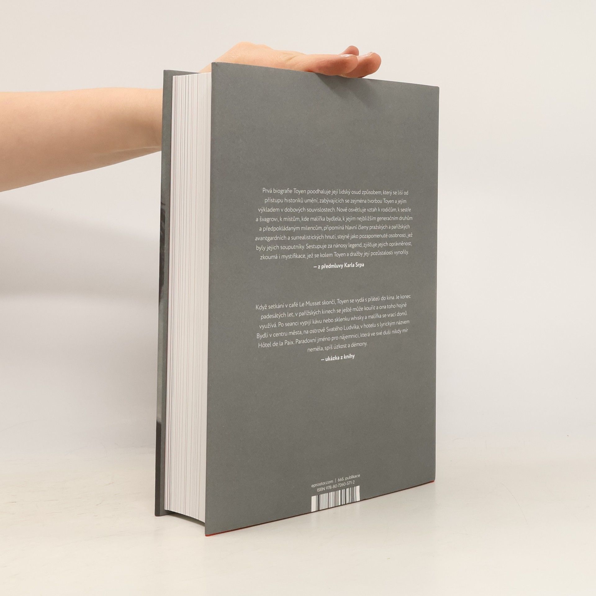 Toyen je dodnes jednou z nejznámějších a nejuznávanějších avantgardních umělkyň na světě. Biografie této svobodomyslné malířky a výrazné osobnosti meziválečné umělecké avantgardy, která sama o sobě šířila mnoho mýtů, odkrývá dosud neznámá fakta a zachycuje historii mnoha obrazů. Spisovatelka a filmová režisérka Andrea Sedláčková prošla desítky archivů, policejních záznamů a dosud nepublikovaných deníků, aby objevila skutečnou Toyen. Strhujícím způsobem líčí její milostný život a dění mezi českými a francouzskými surrealisty a levicovými intelektuály. Dopřává nám setkání s Vítězslavem Nezvalem, Karlem Teigem, Jindřichem Heislerem, André Bretonem, Benjaminem Péretem, Paulem Eluardem a samozřejmě s Jindřichem Štyrským. Půvabně líčí pražské a pařížské galerie, kavárny, kabarety a nevěstince i atmosféru míst, kde malířka a její souputníci pobývali a tvořili. Současně nás seznamuje s historií mnoha Toyeniných obrazů. Text doprovází přes dvě stě reprodukcí a dokumentárních černobílých i barevných fotografií.