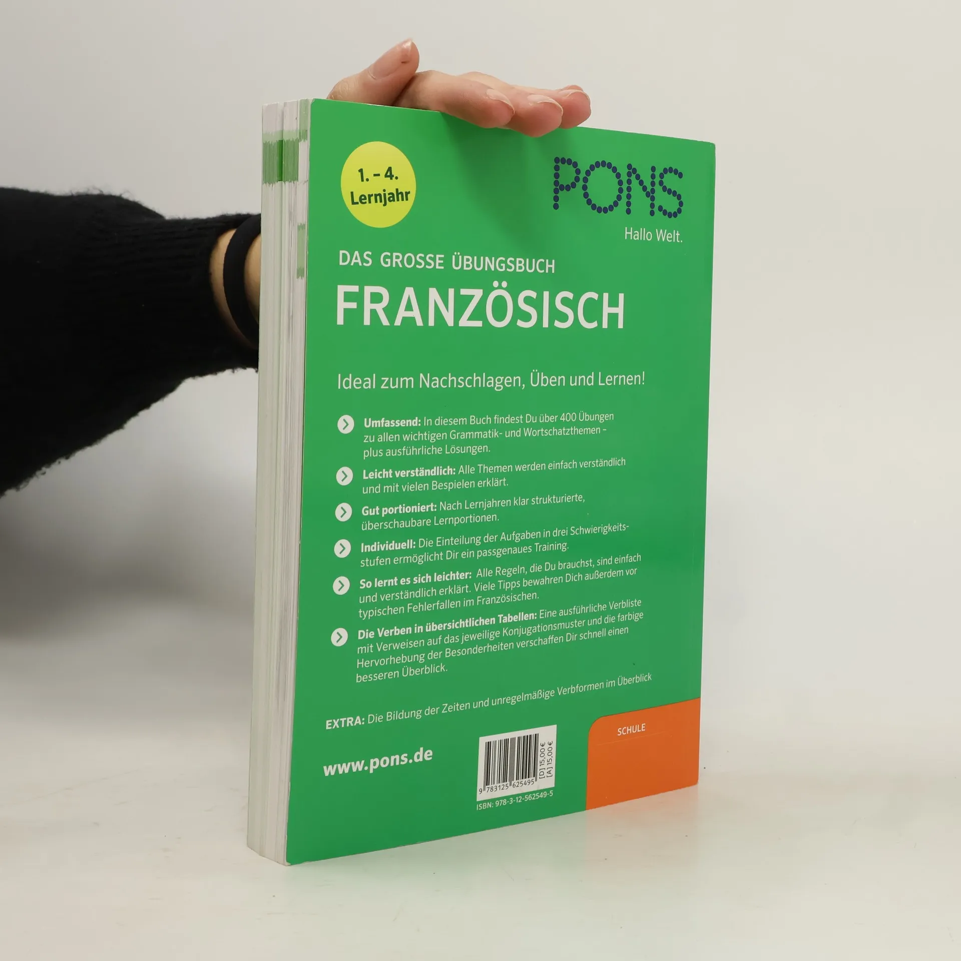 Ideal zum Üben, Nachschlagen und Lernen! Der komplette Lernstoff in 400 Übungen. Wissen kompakt: alle wichtigen Themen der Lernjahre 1-4 Grammatik- und Wortschatzthemen - plus ausführliche Lösungen. Portioniert: überschaubare Lernportionen in drei Schwierigkeitsstufen gegliedert. Selbst entdecken: die kompakten Regel-Übersichten auf den Umschlag-Innenseiten. Ausführliche Verblisten: verweisen auf das jeweilige Konjugationsmuster.