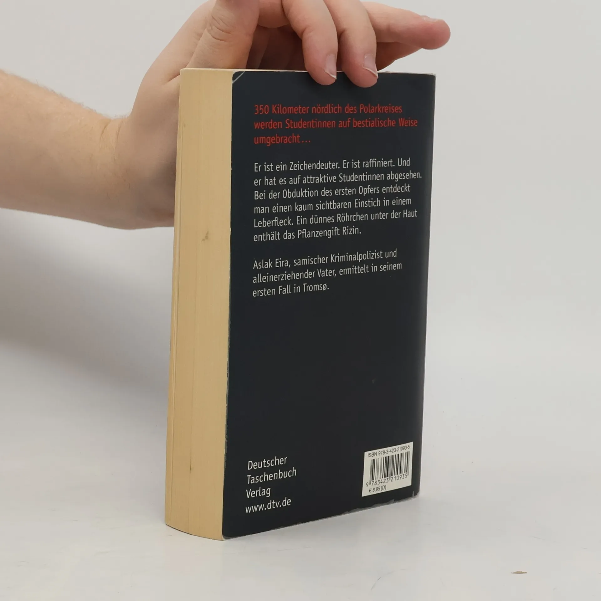In der norwegischen Stadt Tromso wird eine attraktive Studentin tot aufgefunden. Bei der Obduktion entdeckt der Gerichtsmediziner, dass das Opfer vergewaltigt und dann mit einem Pflanzengift getötet wurde. - 1. Fall für den samischen Kriminalkommissar Aslak Eira und seine Kollegin Kine Berger.