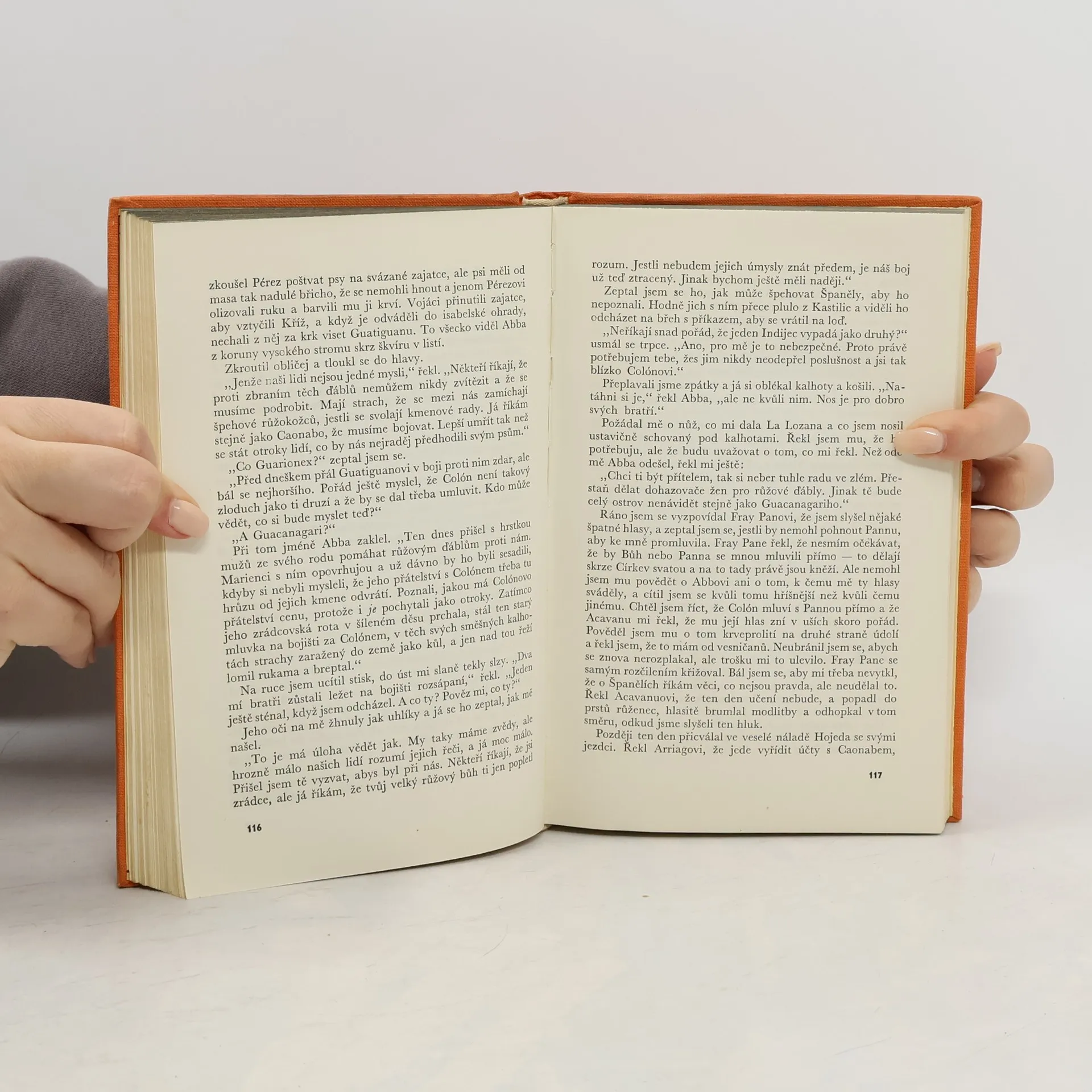Fiktivní deník indiánského sluhy Kryštofa Kolumba na jeho cestách za objevením Nového světa, příběh vzrušující, plný tragiky a přitom místy jiskřící nezbedným humorem. Jako očitý svědek koloniálního tažení s ohněm a mečem, zaznamenává ostrovan krvavou historii dobytí antilské „říše ostrovů“, pocity své i svých krajanů, kteří objevují podivný rozporuplný svět španělských růžovokožců.