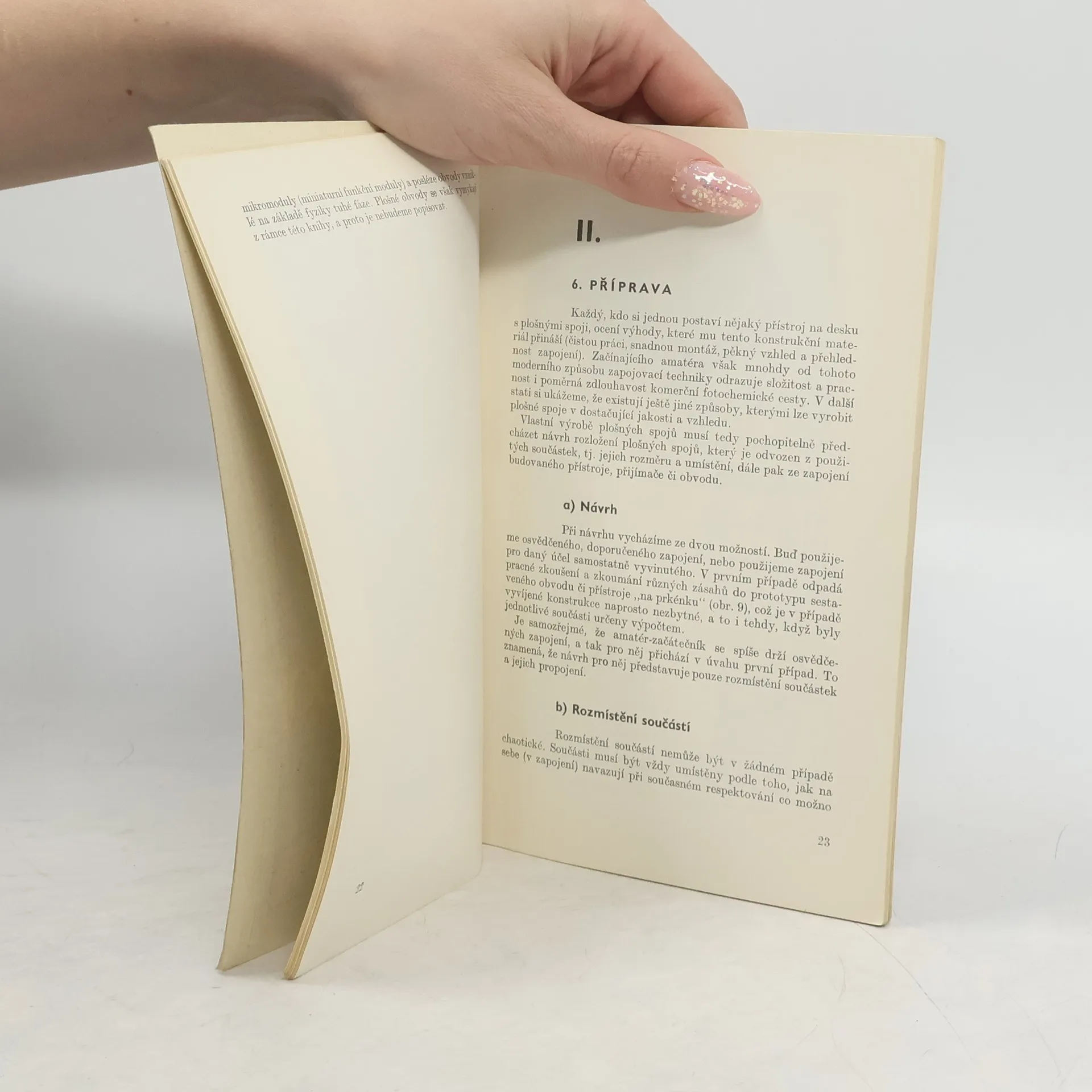 Radioamatérům určená příručka pojednává v úvodní části stručně o vzniku, druzích, výhodách a nevýhodách plošných spojů a podává přehled technologie jejich výroby. V druhé části jsou vysvětleny různé způsoby amatérské výroby plošných spojů od návrhu a schématu zapojení pomontáž a připojeny pokyny pro opravy a výměnu součástí. V poslední části jsou uvedeny příklady destiček s plošnými spoji pro různá vyzkoušená zapojení.
