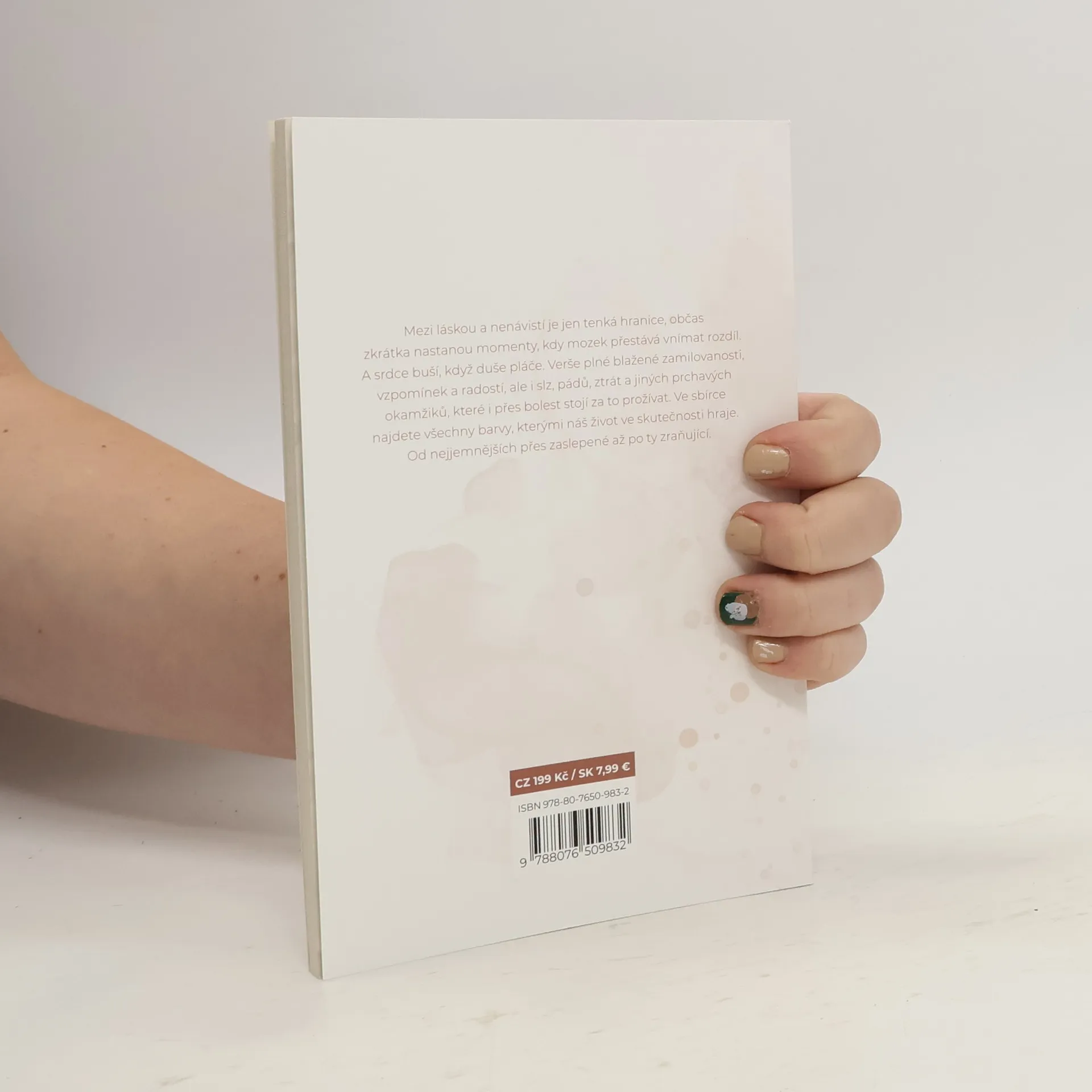 Sbírka moderních veršů plná primitivních lásek, zmařených přátelství, nostalgických slz i jiných důkazů, že poezie žije.Mezi láskou a nenávistí je jen tenká hranice – a občas zkrátka nastanou momenty, kdy mozek přestává vnímat rozdíl. A srdce buší, když duše pláče. Verše plné blažené zamilovanosti, vzpomínek a radostí, ale i slz, pádů, ztrát a jiných prchavých okamžiků, které i přes bolest stojí za to žít. Ve sbírce najdete všechny barvy, kterými náš život ve skutečnosti hraje. Od nejjemnějších přes zaslepené až po ty zraňující.