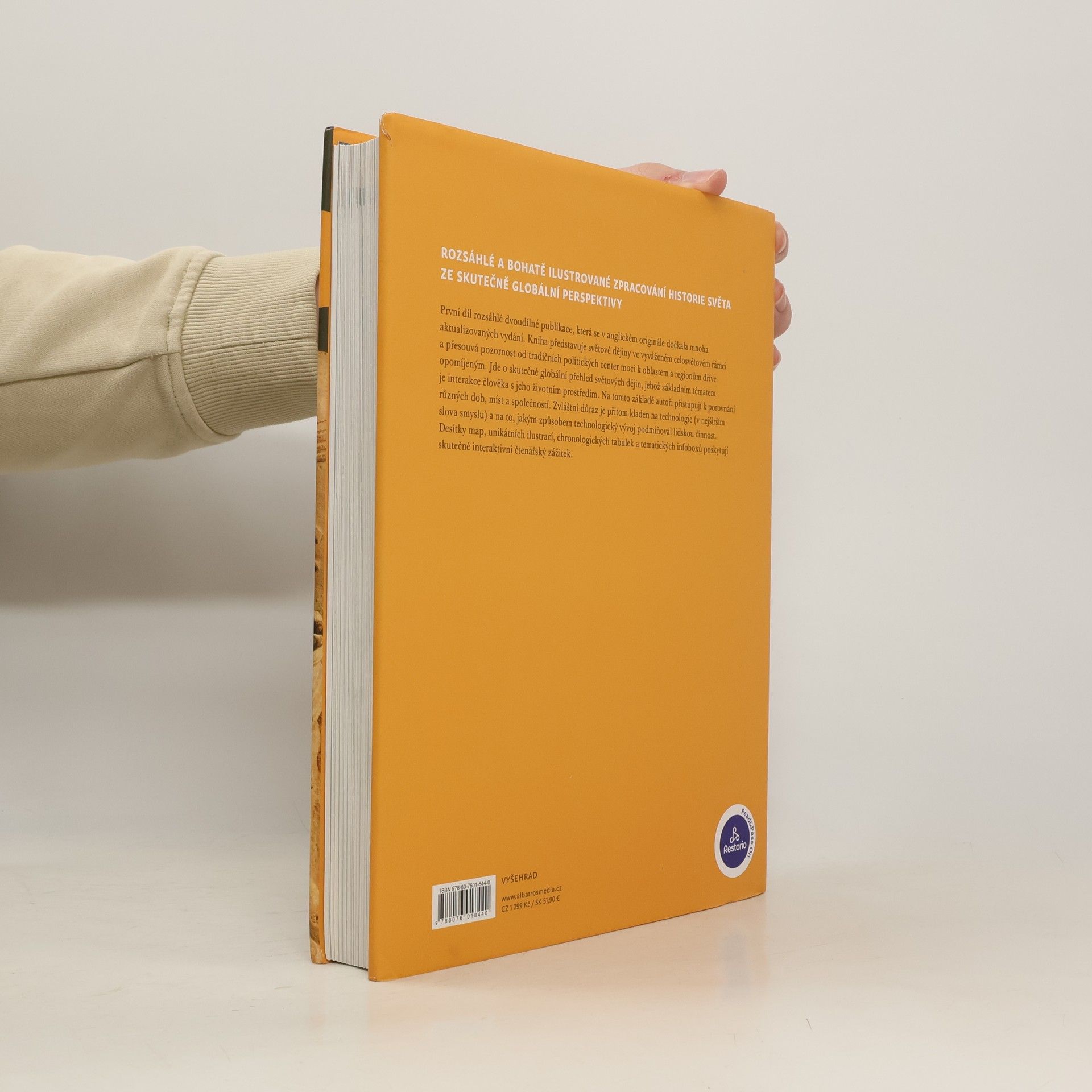 Moderní průvodce světovými dějinami ve výpravném provedení První díl rozsáhlé dvoudílné publikace, která se v anglickém originále dočkala mnoha aktualizovaných vydání. Kniha představuje světové dějiny ve vyváženém celosvětovém rámci a přesouvá pozornost od politických center moci, jimž byla tradičně věnována pozornost. Jde o globální přehled světových dějin, jehož základním tématem je interakce člověka s jeho životním prostředím. Na tomto základě autoři přistupují k porovnání různých dob, míst a společností. Zvláštní důraz je přitom kladen na technologie (v nejširším slova smyslu) a na to, jakým způsobem technologický vývoj podmiňoval lidskou činnost. Desítky map, unikátních ilustrací a chronologických tabulek poskytují skutečně interaktivní čtenářský zážitek.