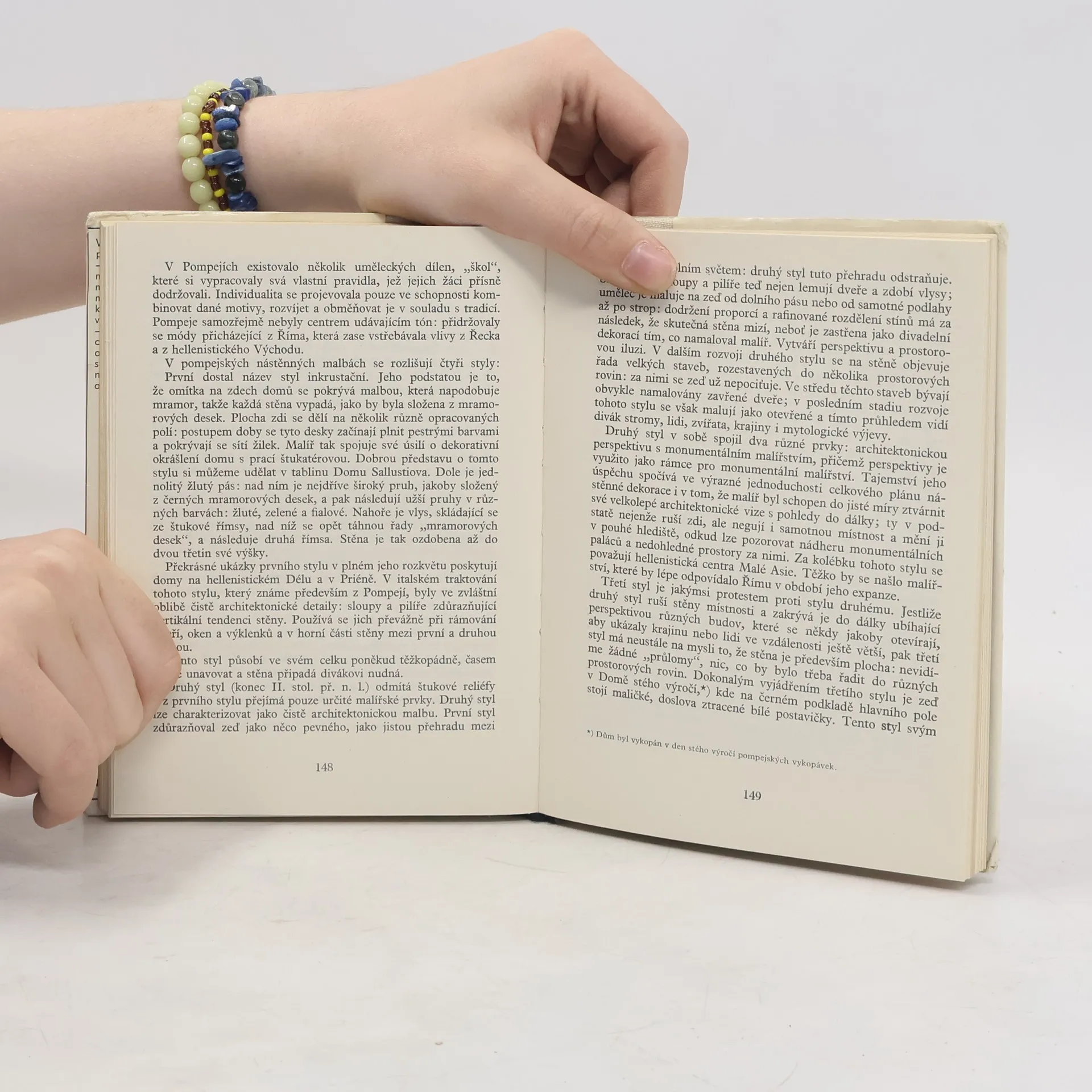 Živý popis obeznamuje se zánikem Pompejí, dějinami vykopávek a ve stručnosti s celou oblastí Kampánie, do níž město patřilo. Potom kniha provází městem podle dochovaných zpráv a objevů a věnuje pozornost rozličným součástem veřejného života. Všímá si správy, řemesel, obchodu, vybavení domů, lázní, gladiátorských zápasů v amfiteátru a přidružených venkovských usedlostí. Ačkoliv publikace pochází z r. 1949, poskytuje obraz, který v hlavních rysech platí dodnes. 2. vydání, (v MF 1. vydání).