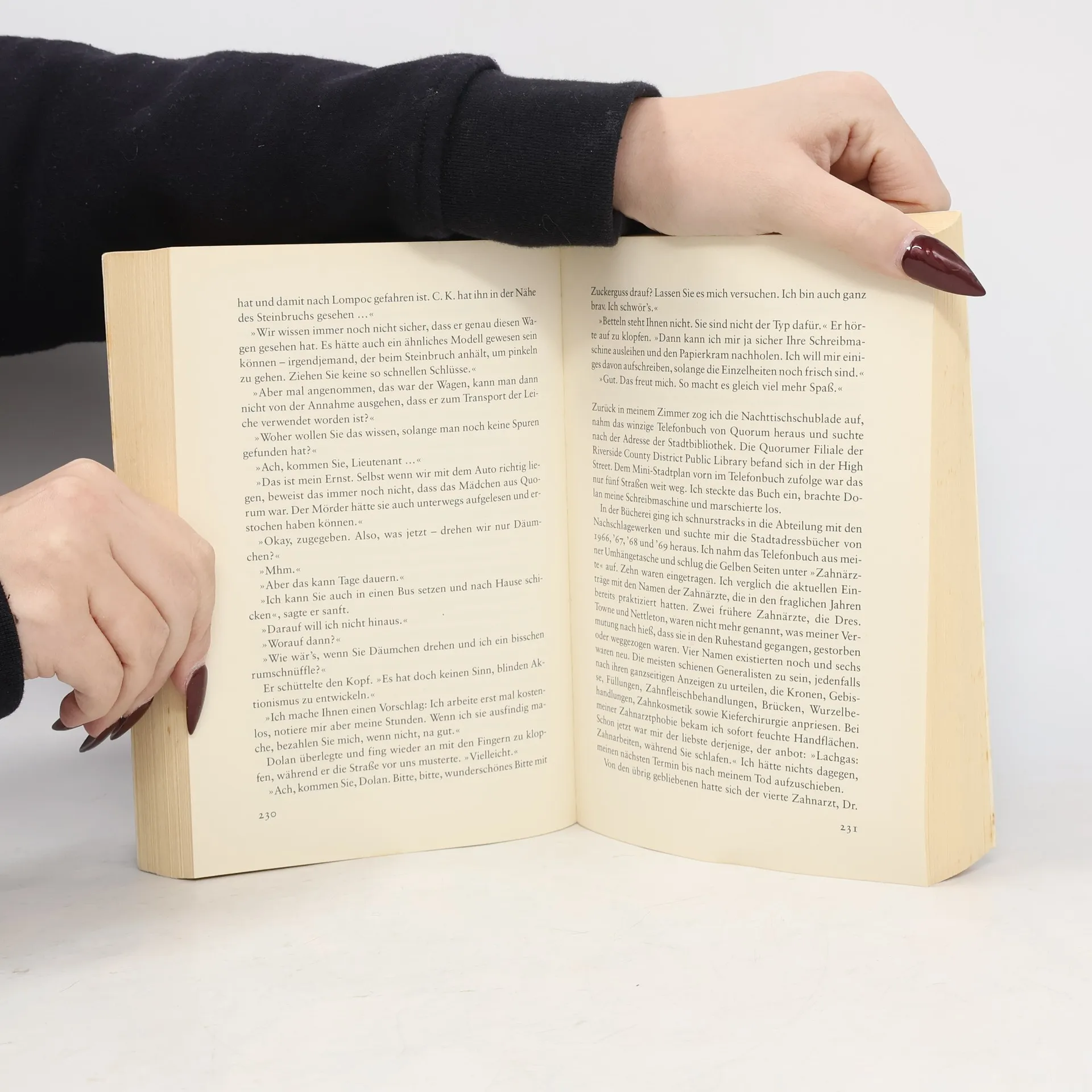 Ein lange zurückliegender Mordfall beschäftigt Privatdetektivin Kinsey Millhone. Wer war das junge Mädchen, das man in einem Steinbruch fand und das bisher niemand identifizieren konnte? Kinsey nimmt die Spurensuche wieder auf - doch was mit der Suche nach der Identität des Opfers beginnt, endet mit der hochriskanten Jagd auf einen Mörder. „Sue Grafton findet immer wieder einen neuen, unerwarteten Dreh, mit dem sie ihre Kriminalromane aus dem Seriellen heraushebt. Es sind eigenständige Bücher, spannend, erfrischend - lakonisch im Ton, realistisch, aber nie brutal, ein bißchen melancholisch ob der Schlechtigkeit und Unberechenbarkeit der Menschen und der Einsamkeit der Detektivin, dabei aber voller Humor, Ironie und Selbstironie der Ich-Erzählerin Kinsey Millhone. Eine im allerbesten Sinne unterhaltsame Mischung.“ Rosemarie Altenhofer - HR 2 „Mikado“, 07.02.04 „Krimiautorin Sue Grafton wird von Thriller zu Thriller besser.“ Die Welt „Kinsey Millhone ist ein reizendes Miststück - es ist nicht leicht, sich nicht in sie zu verlieben.“