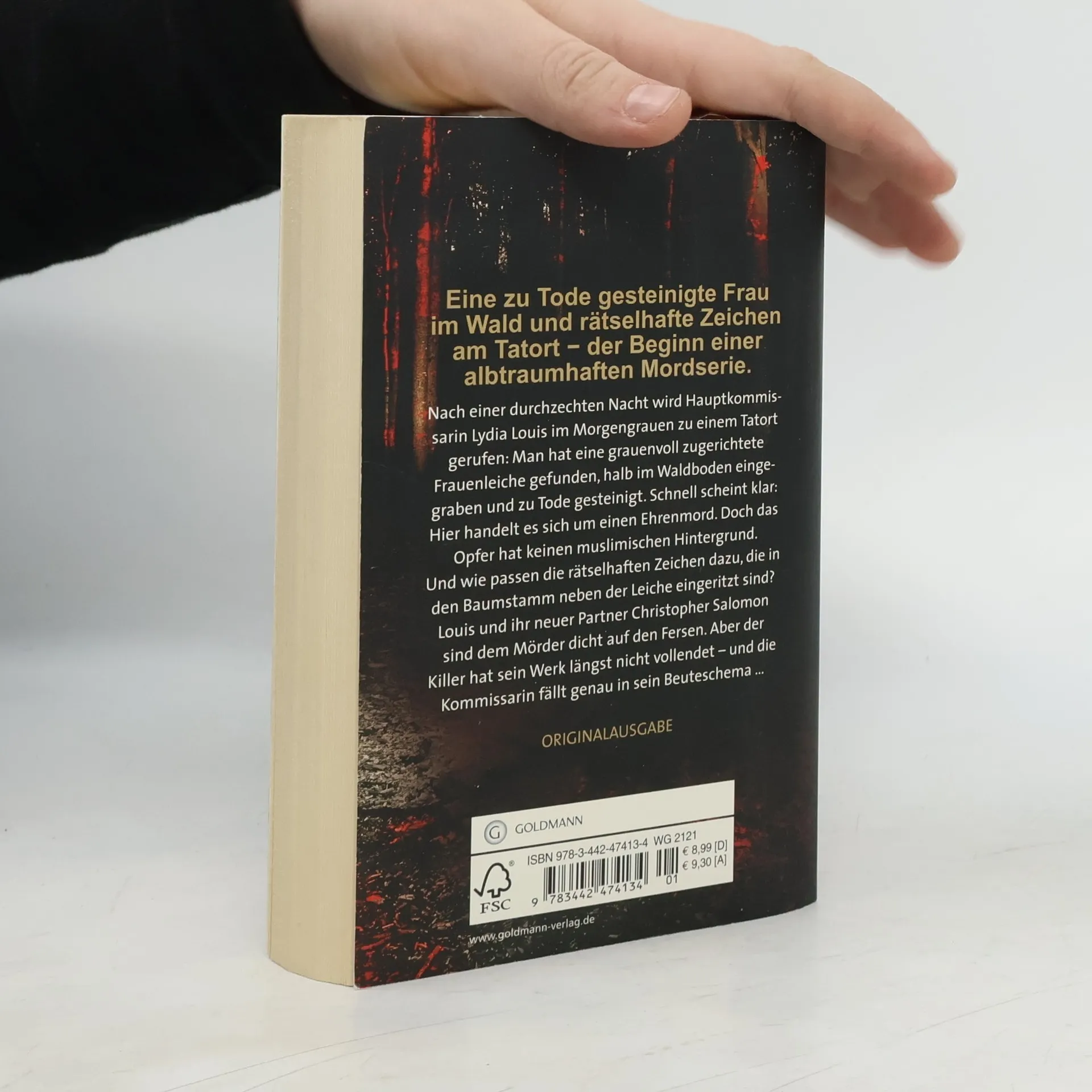 Eine zu Tode gesteinigte Frau im Wald und rätselhafte Zeichen am Tatort. Der Beginn einer alptraumhaften Mordserie Nach einer durchzechten Nacht wird Hauptkommissarin Lydia Louis im Morgengrauen zum Tatort gerufen: Eine grauenvoll zugerichtete Frauenleiche, halb im Waldboden eingegraben und zu Tode gesteinigt. Schnell scheint klar: Hier handelt es sich um einen Ehrenmord. Doch das Opfer hat keinen muslimischen Hintergrund. Und wie passen die rätselhaften Zeichen dazu, die in den Baumstamm neben der Leiche eingeritzt sind? Louis und ihr neuer Partner Christopher Salomon sind dem Mörder dicht auf den Fersen. Doch der Killer hat sein Werk längst nicht vollendet – und die Kommissarin fällt genau in sein Beuteschema …