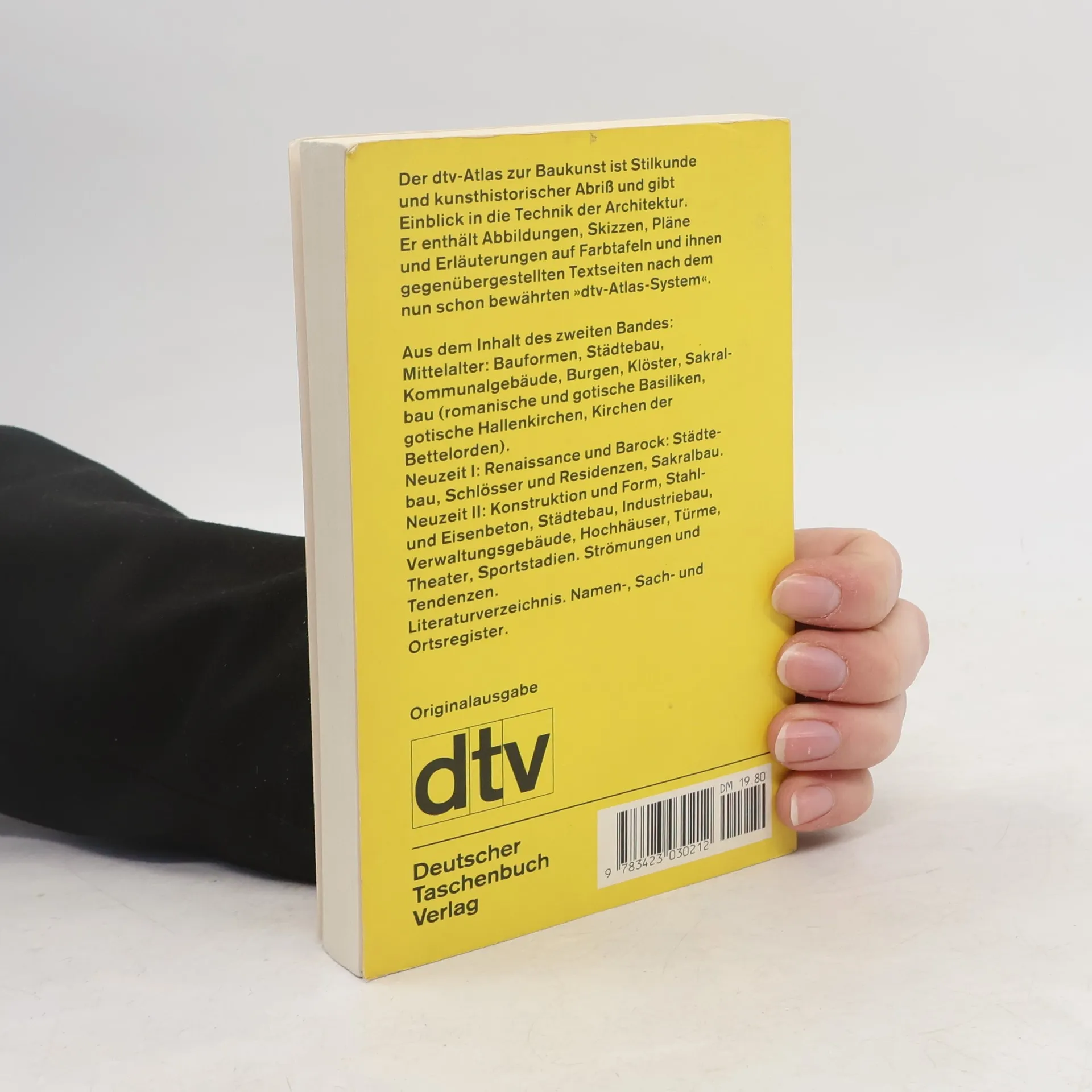 Mit 134 Abbildungsseiten in Farbe Entwurf: Gunther Vogel; Ausführung: Inge und István Szász »Es gilt als eines der Weltwunder des 20. Jahrhunderts und als Wahrzeichen eines ganzen Kontinents; eines der seltsamsten Ungetüme der Baugeschichte ist es in jedem Fall: das Opernhaus in Sydney. Mit seinen aufgerichteten Muschelschalen gehört es eigentlich in die 50er Jahre, doch eingeweiht wurde es erst 1973 (...).« (Süddeutsche Zeitung vom 8. Juli 1999). Informationen über den technischen Aufbau und die gedankliche Gliederung der »monumentalen Architektur-Skulptur« finden Sie im zweiten Band des ›dtv-Atlas Baukunst‹ auf den Seiten 510 und 511. Der zweibändige ›dtv-Atlas Baukunst‹ gibt einen Überblick über Entwicklung, Probleme und Werke der Architektur von den frühen Hochkulturen bis zur Gegenwart. Dabei dient der Atlas als Stilkunde und kunsthistorischer Abriss, gleichzeitig aber auch als Einführung in die Technik der Architektur. Aus dem Inhalt des zweiten Bandes: Mittelalter: Bauformen. Städtebau. Kommunalgebäude. Burgen. Klöster. Sakralbau. Neuzeit I: Renaissance und Barock: Städtebau. Schlösser und Residenzen. Sakralbau. Neuzeit II: Konstruktion und Form. Stahl- und Eisenbeton. Städtebau. Industriebau. Verwaltungsgebäude. Hochhäuser. Türme. Theater. Sportstadien. Strömungen und Tendenzen. Mit Literaturverzeichnis und ausführlichem Register für beide Bände.