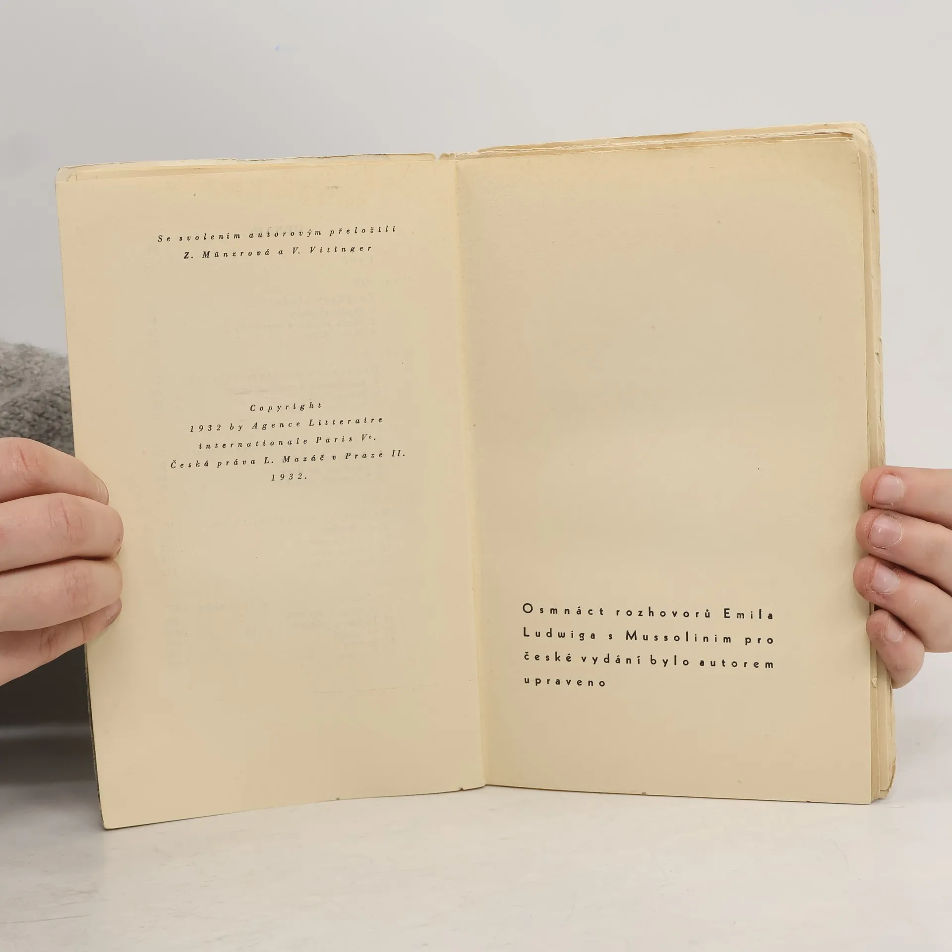B. Mussolini, Emil Ludwig, Václav Vitinger, Z. Münzrová