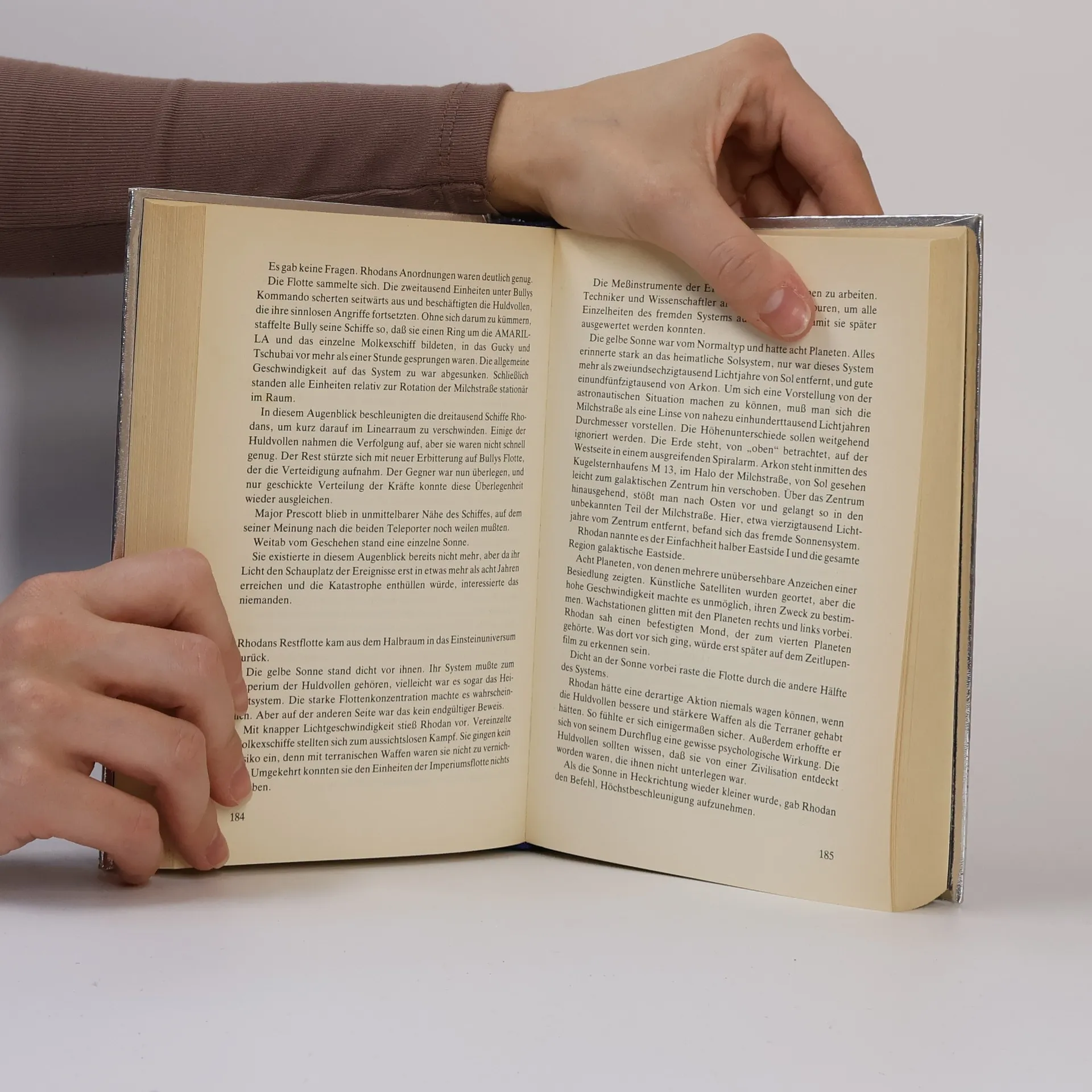 Enthaltene Original-Romane (Heftromane, #161-167): - "Vier von der USO" - "Der Pakt mit dem Tod" - "Das zweite Imperium" - "Im Bann des Riesenplaneten" - "Kontaktschiff Terrania" - "Das Labyrinth von Eysal" - "Spione von der Erde" Nach der verheerenden Invasion der Hornschrecken ist Perry Rhodan bemüht, das Geheimnis der Schreckwürmer und der rätselhaften Molkexmasse zu lösen, zumal die ersten Spuren auf die Existenz eines großen Sternenreiches auf der Ostseite der Galaxis hinweisen. Vier Spezialisten der USO gelingt es, Kontakt mit einem der monströsen Schreckwürmer aufzunehmen. Es stellt sich heraus, dass diese Wesen seit Jahrtausenden von mysteriösen Fremden, die sie die Huldvollen nennen, missbraucht werden. Während terranische Raumfahrer immer tiefer in den Herrschaftsbereich des zweiten Imperiums eindringen, entdecken Wissenschaftler das Geheimnis des Riesenplaneten Herkules. Tief im Innern dieser Welt scheint ein Suprahet, ein aus Molkex bestehendes, sternenverschlingendes Monstrum zu existieren, das nur mit dem Wissen der längst ausgestorbenen Oldtimer zu besiegen ist. Die Auseinandersetzungen mit dem erwachsenen Suprahet, vor dem offenbar sogar das allmächtige Geisteswesen ES geflohen ist, erschüttert ein ganzes Sonnensystem. Gleichzeitig kommt es zu den ersten Begegnungen mit den Huldvollen, die mit ihren molkexgepanzerten Schiffen unüberwindliche Gegner sind.