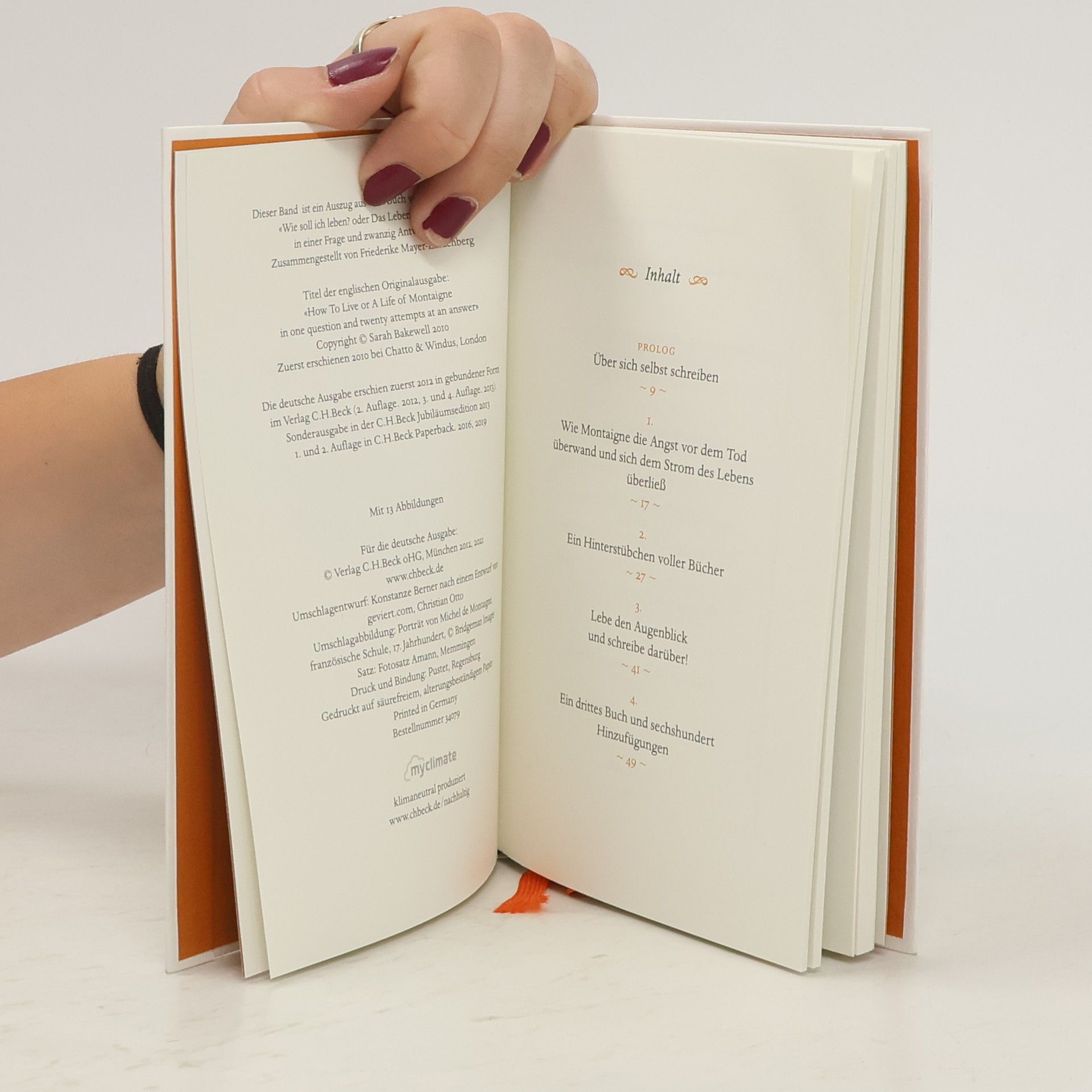 "EINE WIEDERBEGEGNUNG MIT DEM GROßEN STOIKER DER RENAISSANCE." - JOSEPH HANIMANN, SÜDDEUTSCHE ZEITUNG "Der Umgang mit Büchern weicht mir auf meiner ganzen Lebensbahn nicht von der Seite und steht mir allenthalben zu Diensten. Er tröstet mich im Alter und in der Einsamkeit. Er entlastet mich von der Bürde eines öden Müßiggangs und hält mir zu jeder Stunde unerwünschte Gesellschaft vom Leibe." Sarah Bakewell beschreibt in diesem Auszug aus ihrer viel gerühmten Montaigne-Biographie, warum sich das Leben Montaignes mit und zwischen Büchern abspielte: Lesen war für ihn kein Gegenpol zum Leben, sondern das Tor zu einer erfüllten, angeregten, phantasievollen, glücklichen Existenz. Ihr kurzweiliges Buch zeigt, was wir von dem Leser Montaigne für unser eigenes Leben lernen können. Montaignes Leben mit Büchern - glänzend erzählt von Sarah Bakewell Die schönsten Episoden aus ihrem Bestseller "Wie soll ich leben?" "Eine meisterliche Biografie" - Wolfgang Schneider, Der Tagesspiegel Wunderschön gestaltetes, charmantes Geschenkbuch