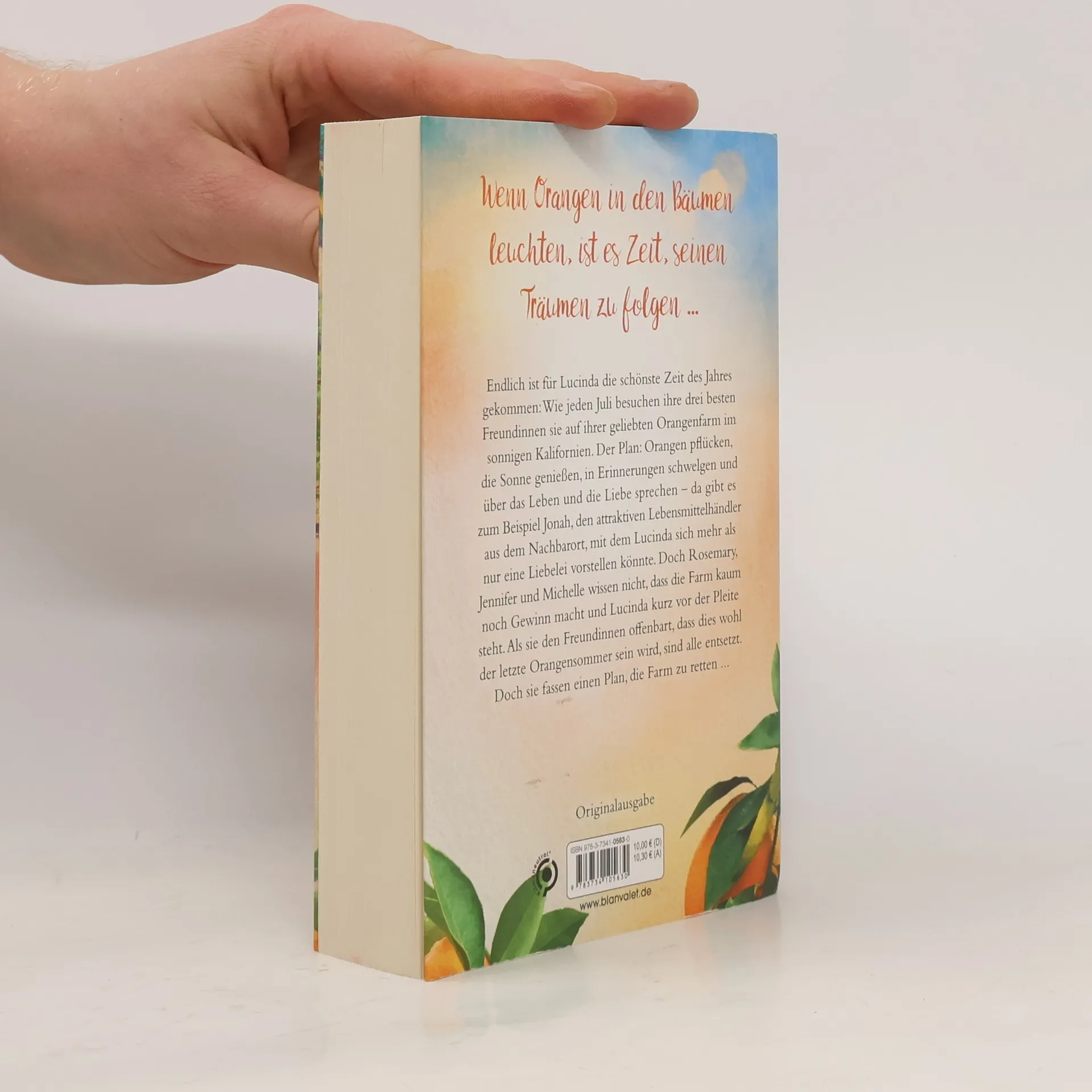 Wenn die Orangen in den Bäumen leuchten und die Sonne hoch am kalifornischen Himmel steht, ist es Zeit, sich zu verlieben ... Endlich ist für Lucinda die schönste Zeit des Jahres gekommen: Wie jeden Juli besuchen ihre drei besten Freundinnen sie auf ihrer geliebten Orangenfarm im sonnigen Kalifornien. Der Plan: Orangen pflücken, die Sonne genießen, in Erinnerungen schwelgen und über das Leben und die Liebe sprechen – da gibt es zum Beispiel Jonah, den attraktiven Lebensmittelhändler aus dem Nachbarort, mit dem Lucinda sich mehr als nur eine Liebelei vorstellen könnte. Doch Rosemary, Jennifer und Michelle wissen nicht, dass die Farm kaum noch Gewinn macht und Lucinda kurz vor der Pleite steht. Als sie den Freundinnen offenbart, dass dies wohl der letzte Orangensommer sein wird, sind alle entsetzt. Doch sie fassen einen Plan, die Farm zu retten ... Die zauberhafte »Kalifornische Träume«-Reihe bei Blanvalet: 1. Wintervanille 2. Orangenträume 3. Mandelglück 4. Erdbeerversprechen 5. Walnusswünsche 6. Blaubeerjahre Alle Bände können auch unabhängig gelesen werden.